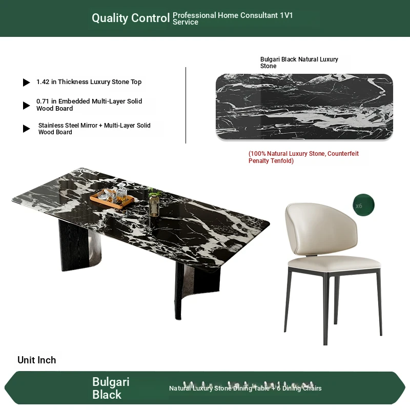 [Bulgari Black] Natural Luxury Stone Dining Table + Dining Chair * 6 (Pure Natural Luxury Stone, Ten Penalties for Fake)