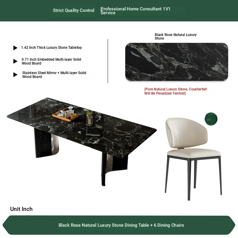[Black Rose] Natural Luxury Stone Dining Table + Dining Chair * 6 (Pure Natural Luxury Stone, Ten Penalties for Fake)