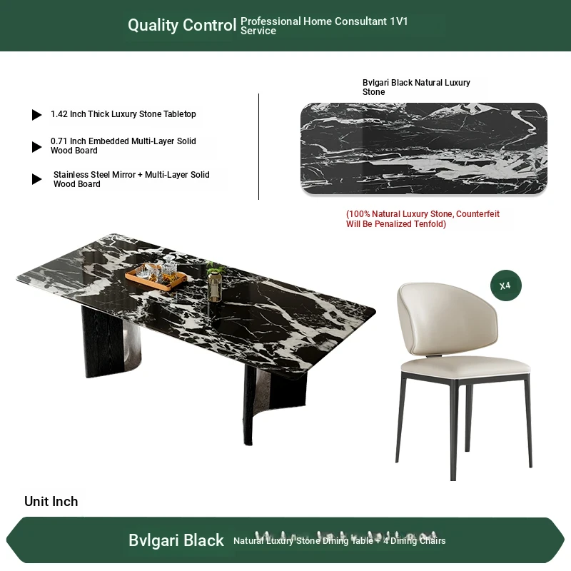 [Bulgari Black] Natural Luxury Stone Dining Table + Dining Chair * 4 (Pure Natural Luxury Stone, Ten Penalties for Fake)