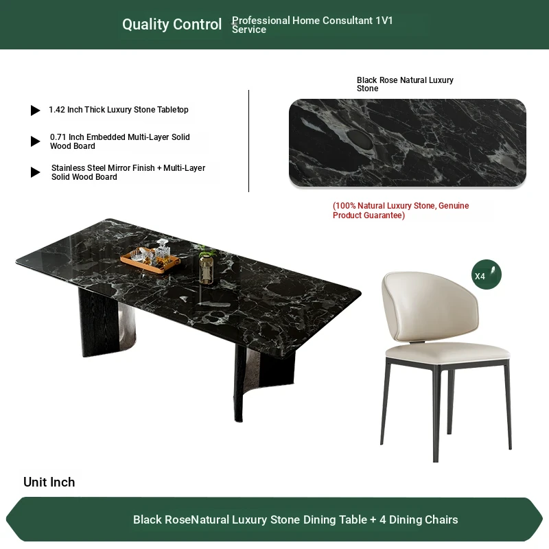 [Black Rose] Natural Luxury Stone Dining Table + Dining Chair * 4 (Pure Natural Luxury Stone, Ten Penalties for Fake)