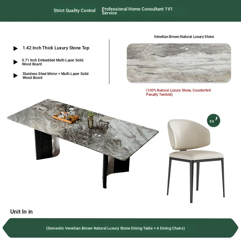 [Venice Brown Made in China] Natural Luxury Stone Dining Table + Dining Chair * 4 (Pure Natural Luxury Stone, Ten Penalties for One False)