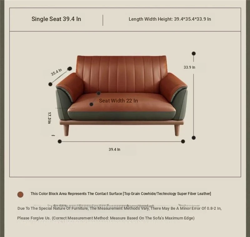 Luxury Genuine Leather Sofa for Small Spaces - Stylish and Modern Design for Your Living Room - Premium First Layer Cowhide Furniture for a Chic Home Décor