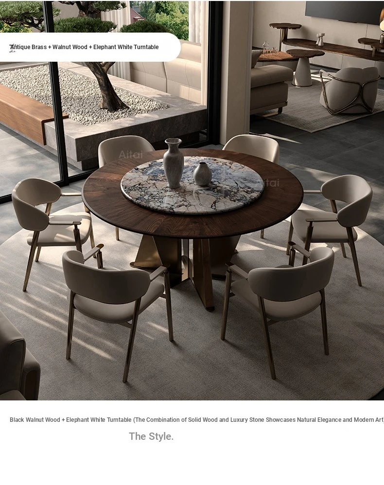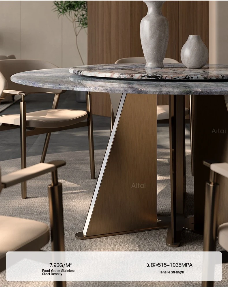 Round dining table/51.18in/Blue Crystal Luxury stone/turntable elephant white luxury stone