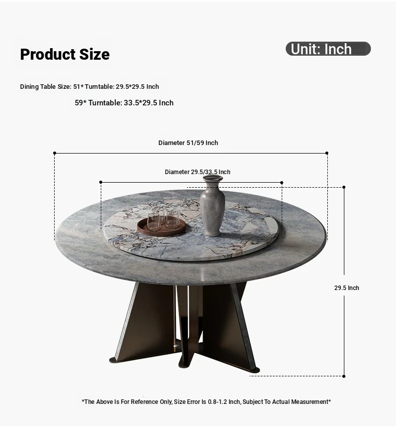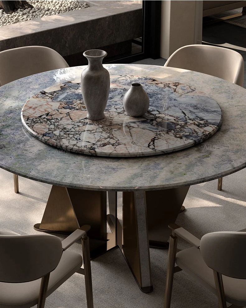 Round dining table/59.06in/Blue Crystal Luxury stone/turntable elephant white luxury stone