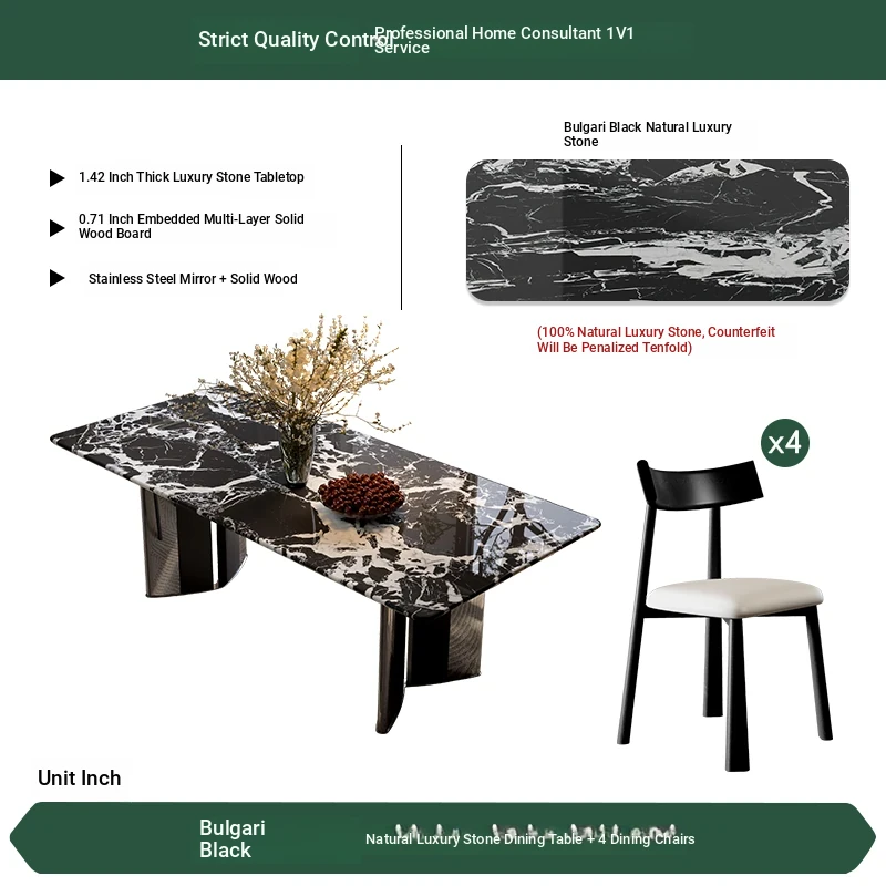 [Bulgari Black] Natural Luxury Stone Dining Table + Dining Chair * 4 (Pure Natural Luxury Stone, Ten Penalties for Fake)