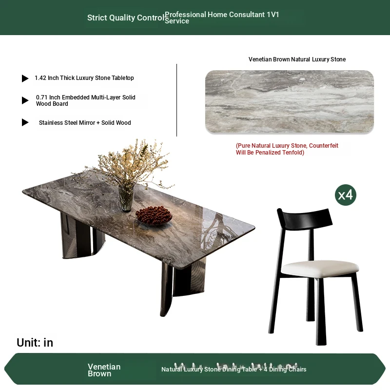 [Venice Brown Made in China] Natural Luxury Stone Dining Table + Dining Chair * 4 (Pure Natural Luxury Stone, Ten Penalties for One False)