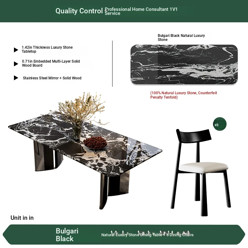 [Bulgari Black] Natural Luxury Stone Dining Table + Dining Chair * 6 (Pure Natural Luxury Stone, Ten Penalties for Fake)
