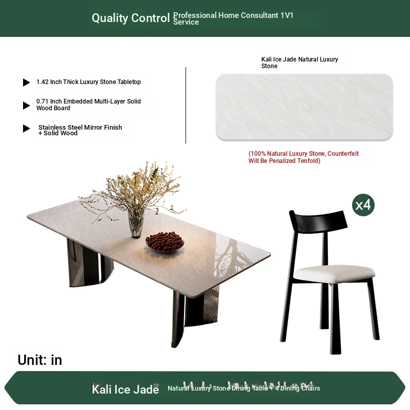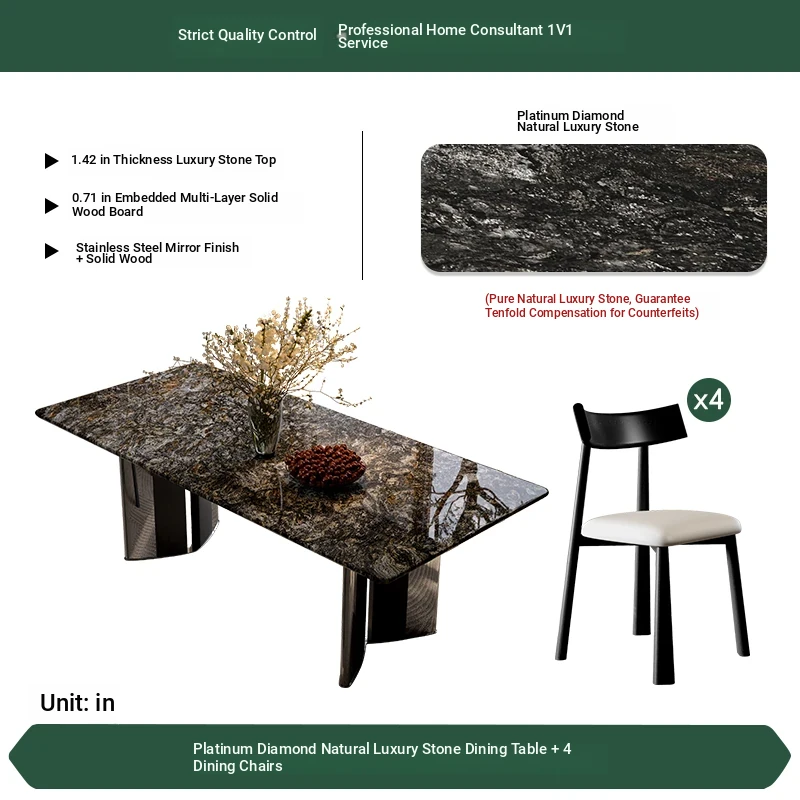 [Platinum Diamond] Natural Luxury Stone Dining Table + Dining Chair * 4 (Pure Natural Luxury Stone, Ten Penalties for Fake)
