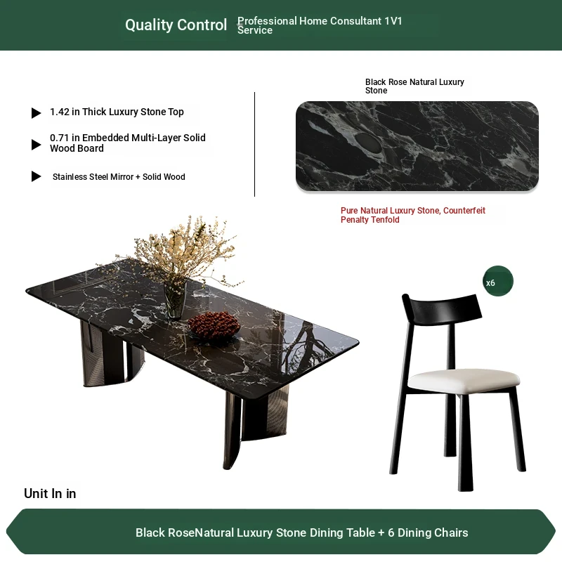 [Black Rose] Natural Luxury Stone Dining Table + Dining Chair * 6 (Pure Natural Luxury Stone, Ten Penalties for Fake)