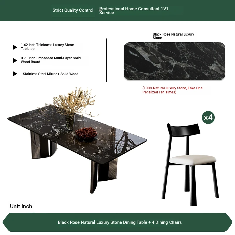 [Black Rose] Natural Luxury Stone Dining Table + Dining Chair * 4 (Pure Natural Luxury Stone, Ten Penalties for Fake)