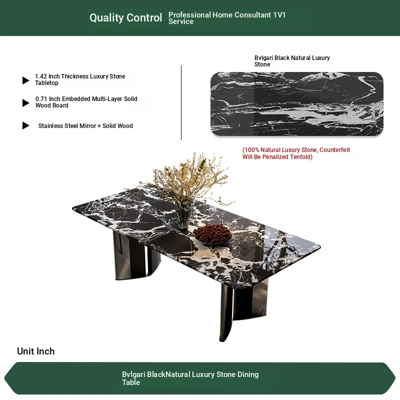 [Bulgari Black] Natural Luxury Stone Dining Table (Pure Natural Luxury Stone, Ten Penalties for Fake)