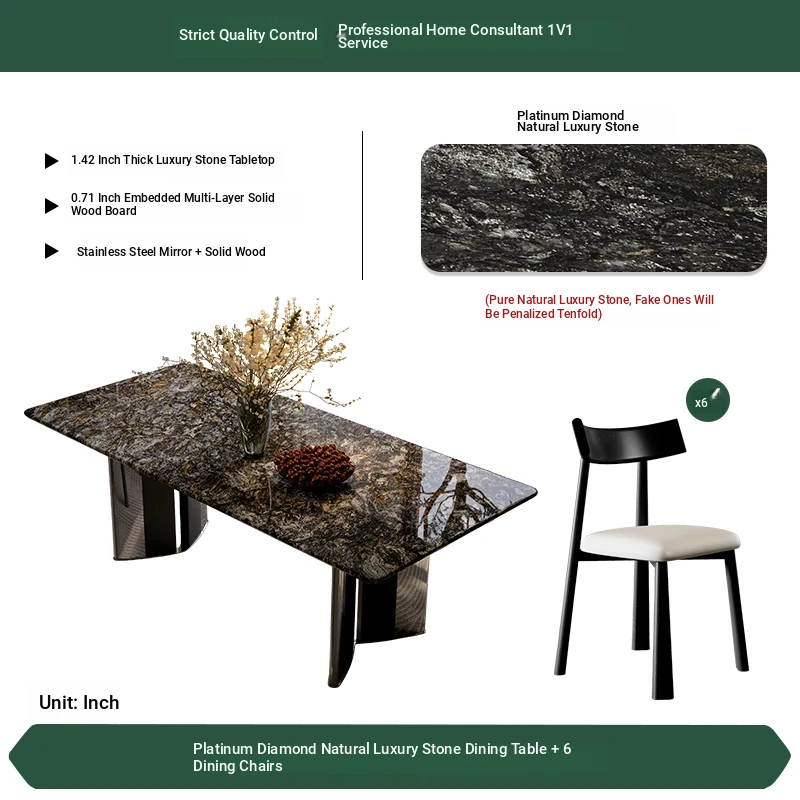 [Platinum Diamond] Natural Luxury Stone Dining Table + Dining Chair * 6 (Pure Natural Luxury Stone, Ten Penalties for Fake)