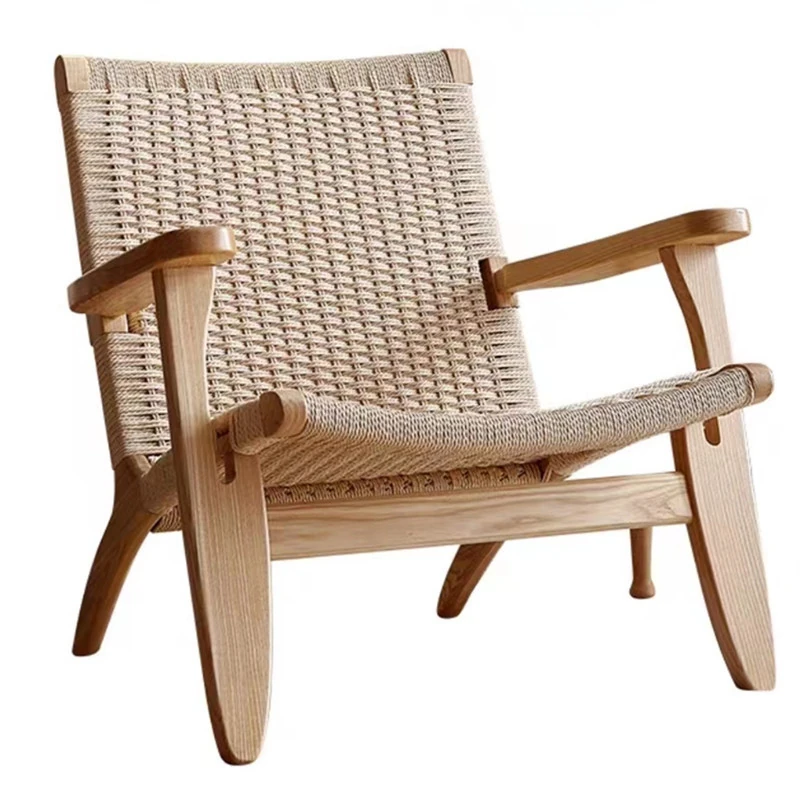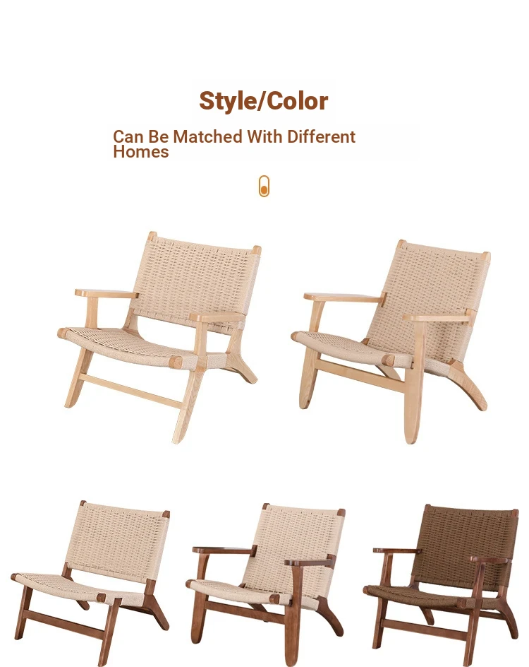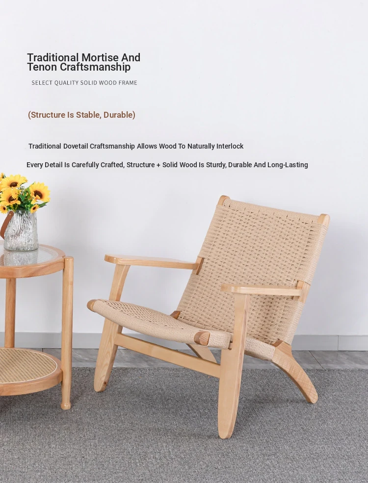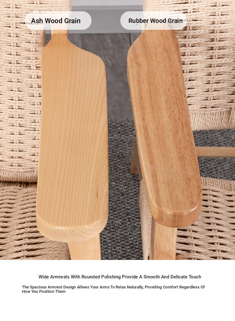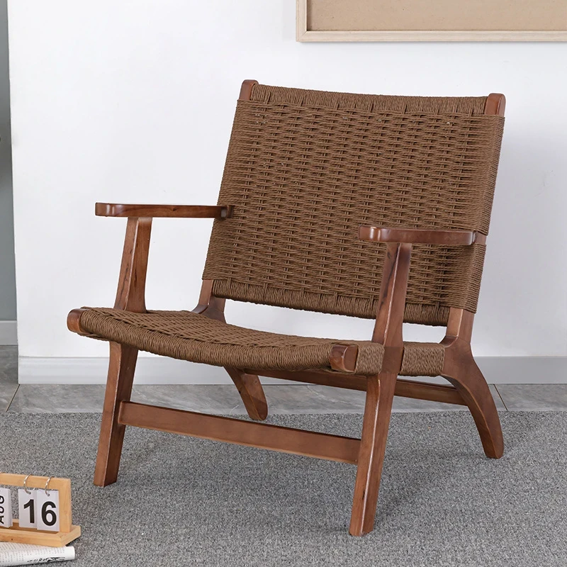 Rubber Wood Armrest Walnut Rope