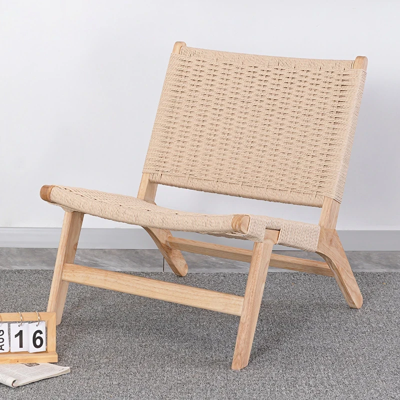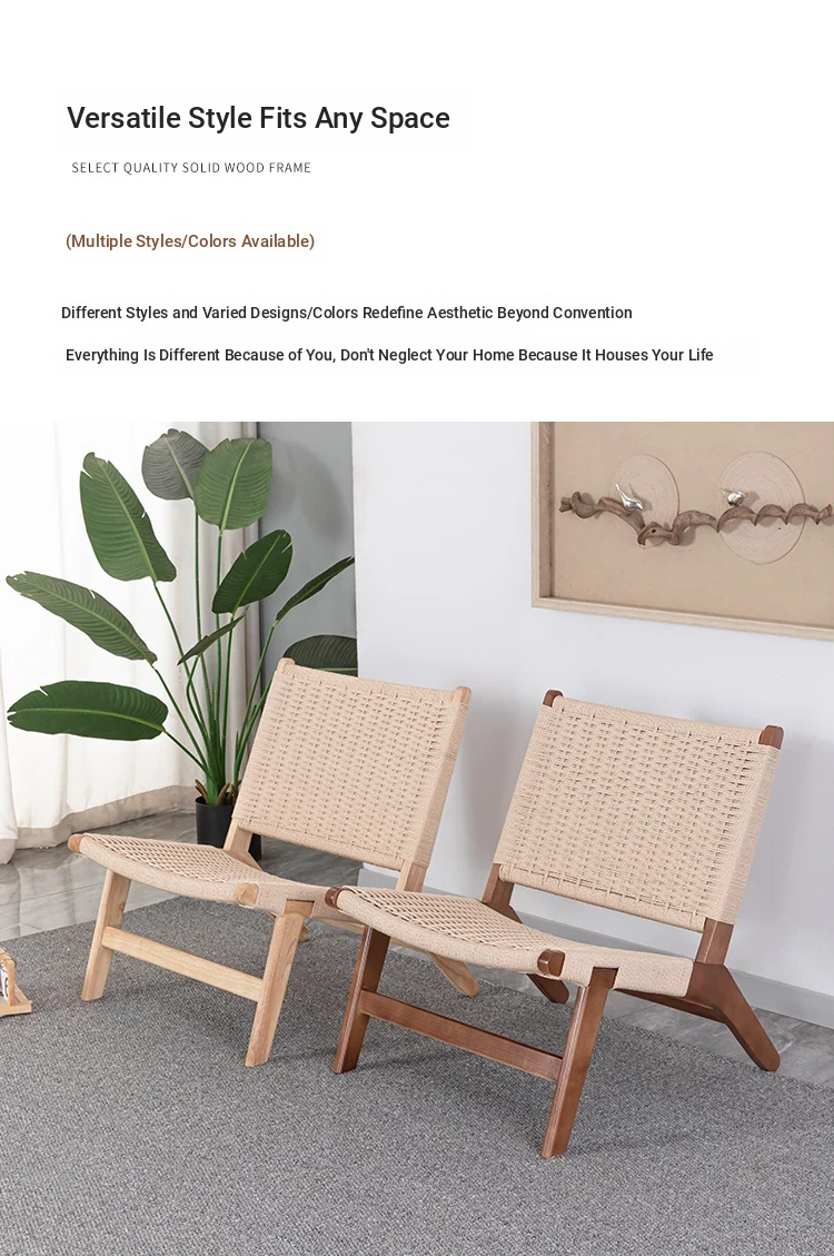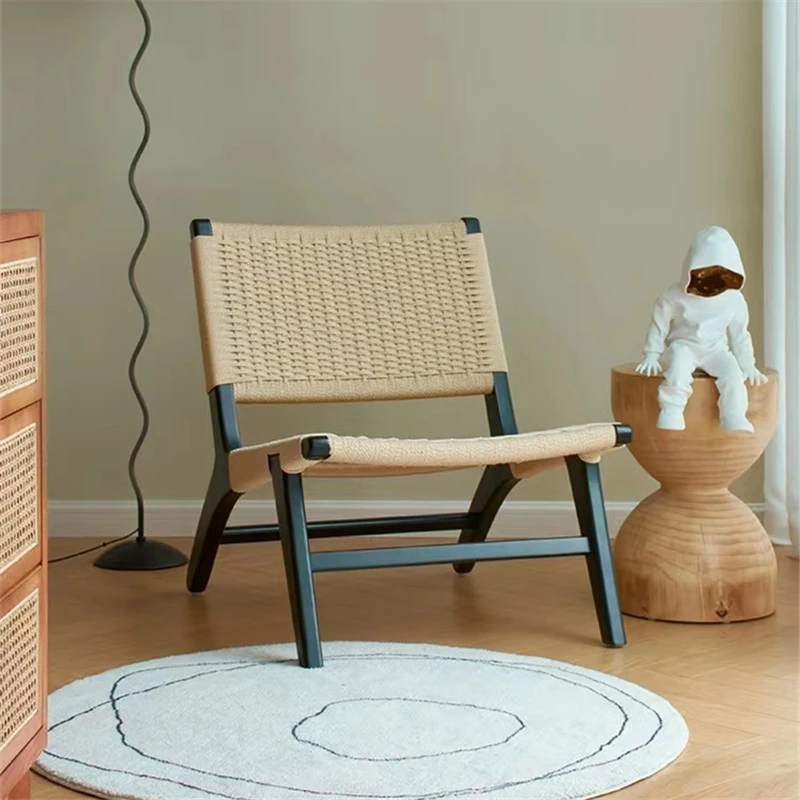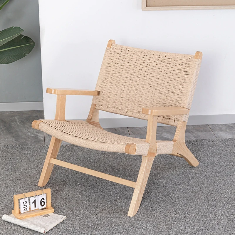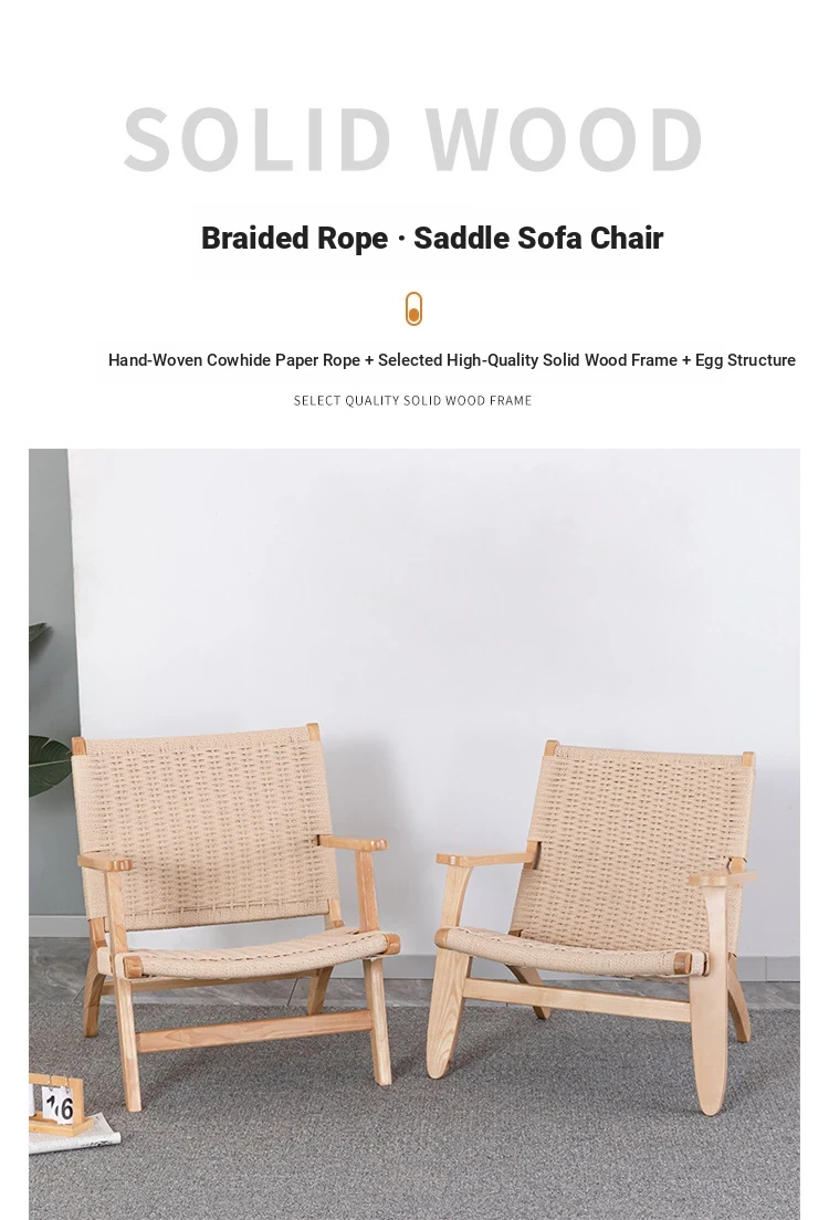 Rubber Wood Armrest Walnut Rope