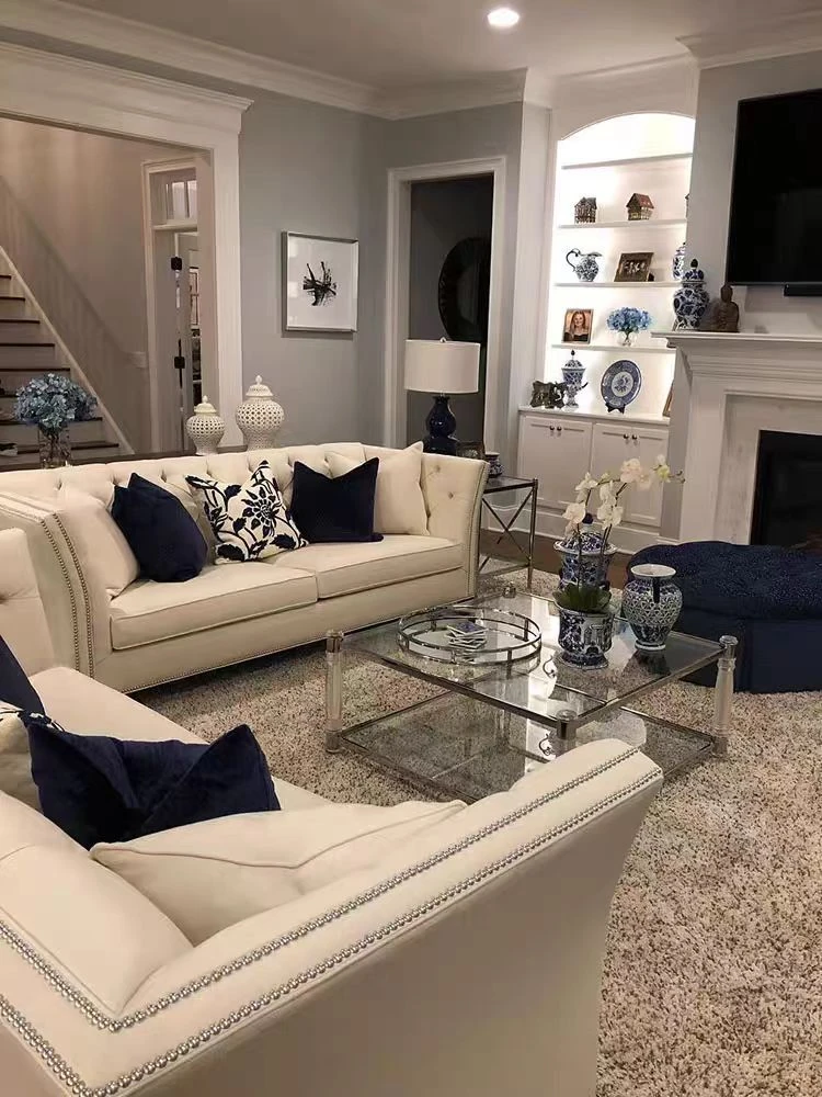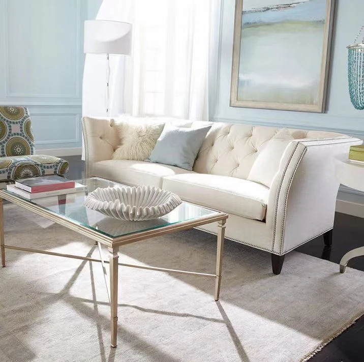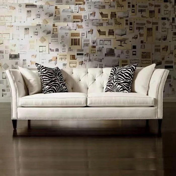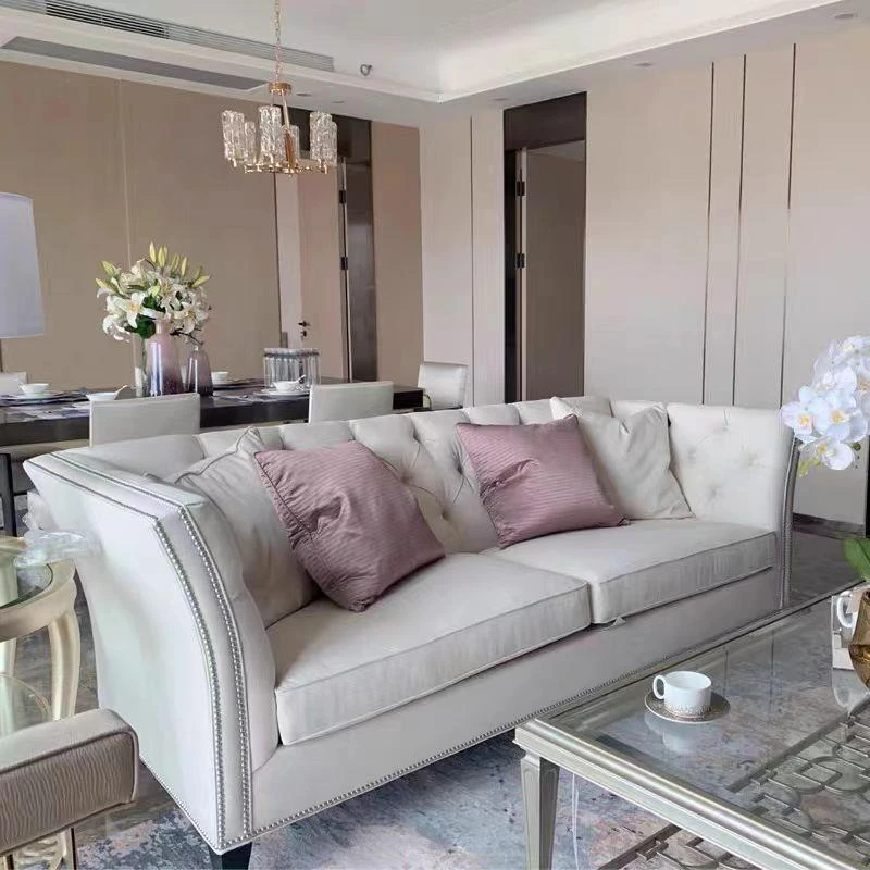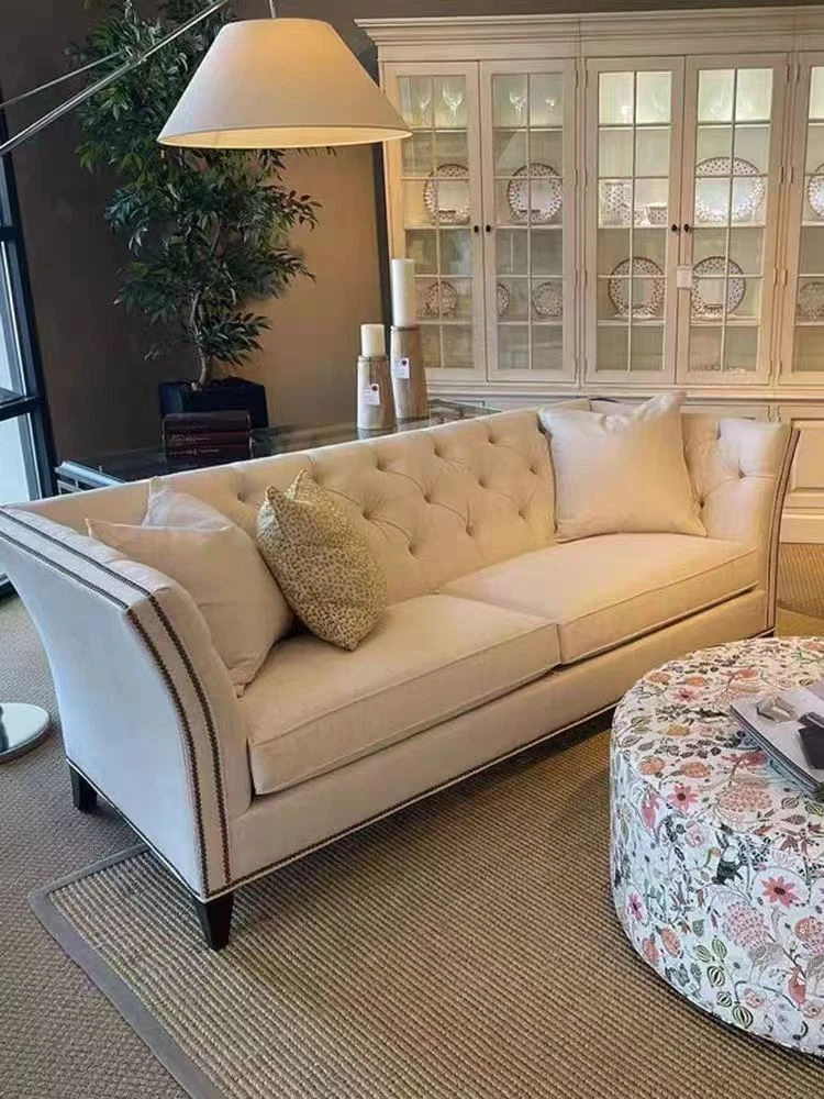 Modern American Light Luxury Faux Leather Sofa Set - Minimalist Design for Small Living Rooms - Soft Upholstered Sectional Sofa with Stylish Button Tufting