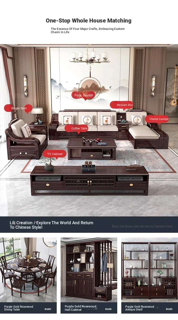 [Zijin sandalwood] 1+2+3 + tea table + square * 2 + TV cabinet