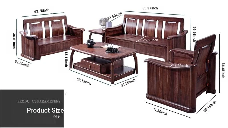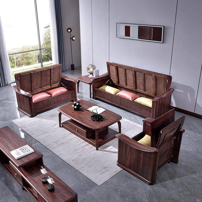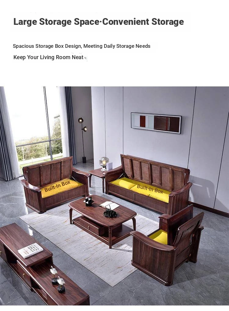 Modern Chinese Style Solid Wood Sofa Set - Versatile Storage Sofa for Small Living Rooms, Perfect for Year-Round Comfort in Summer and Winter