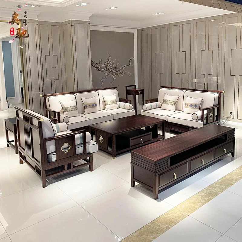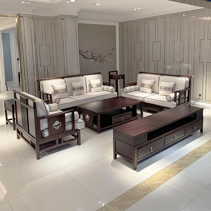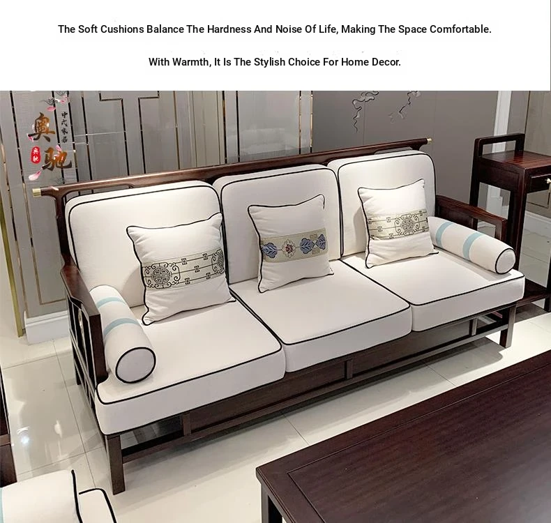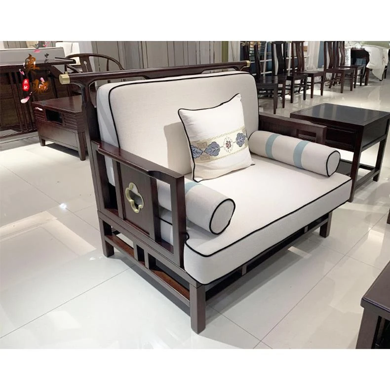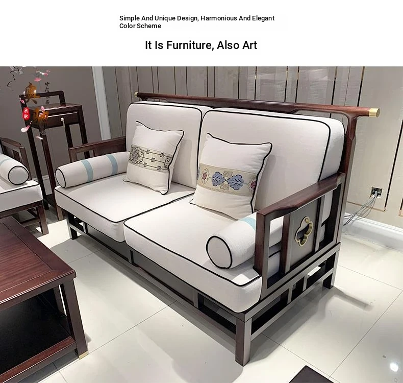 Modern Chinese-style Sofa Set - Black Walnut Solid Wood Zen Fabric Couch for Small Spaces - Minimalist Living Room Furniture