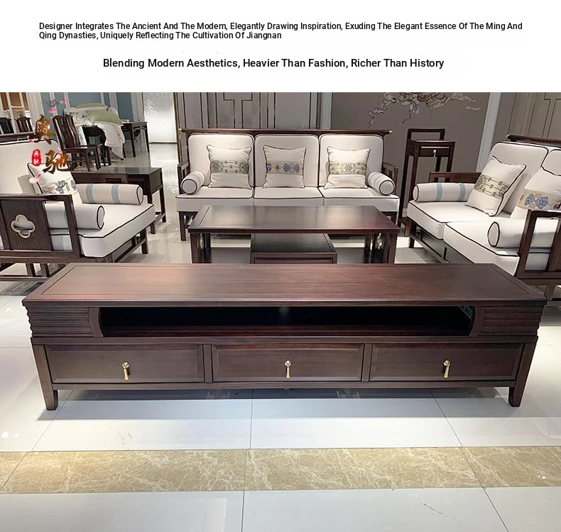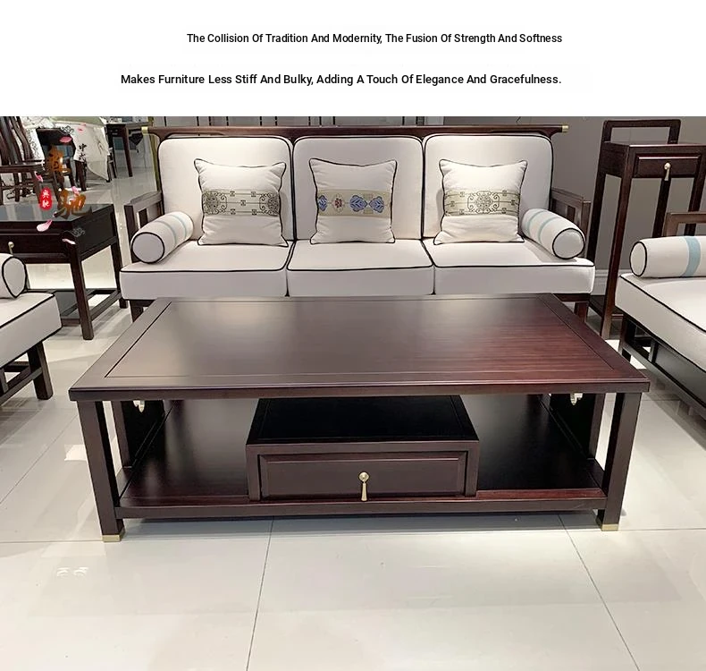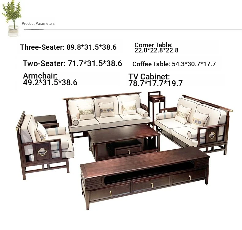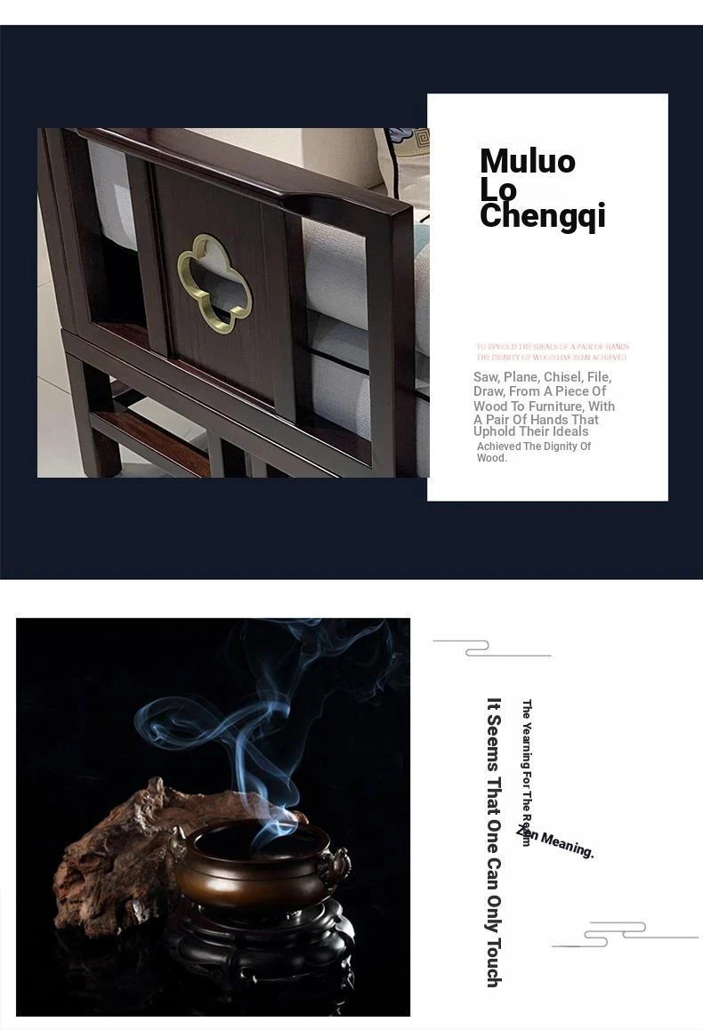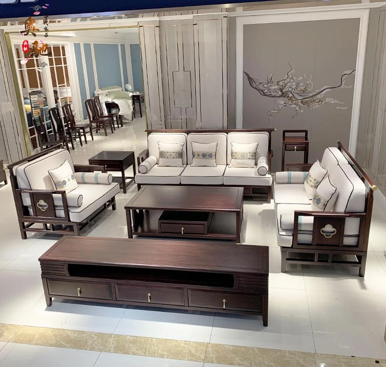 Modern Chinese-style Sofa Set - Black Walnut Solid Wood Zen Fabric Couch for Small Spaces - Minimalist Living Room Furniture