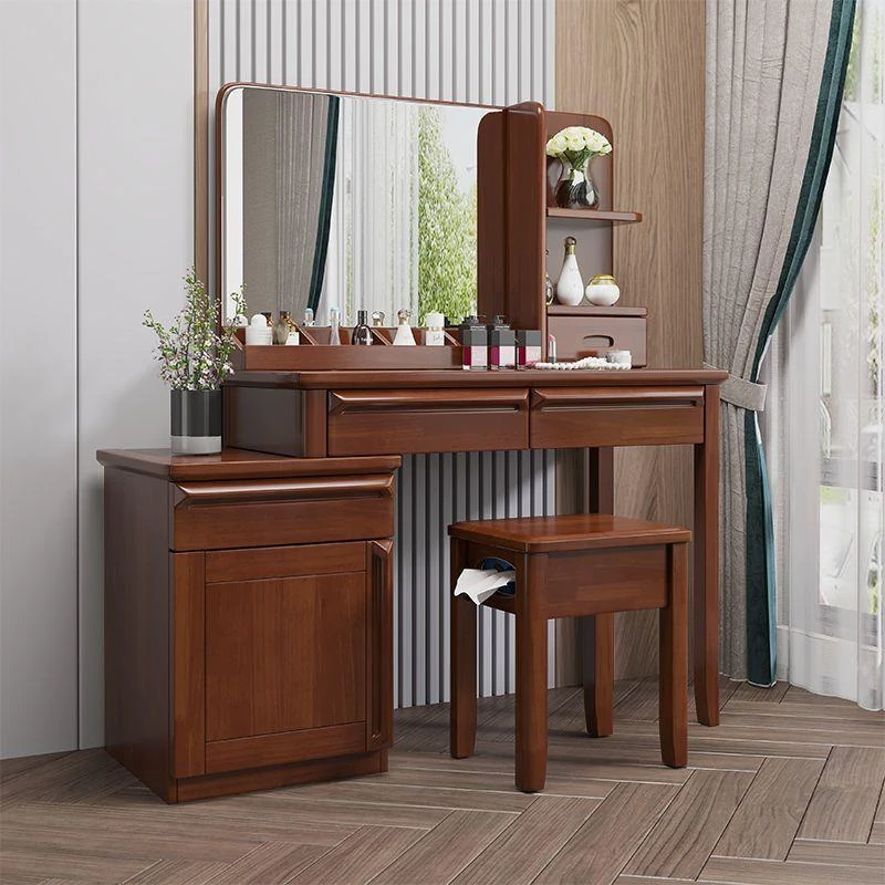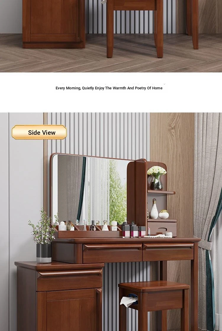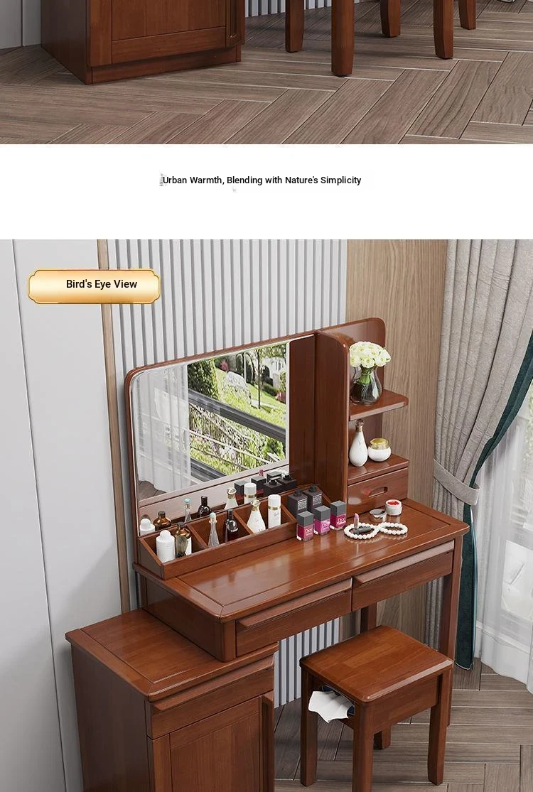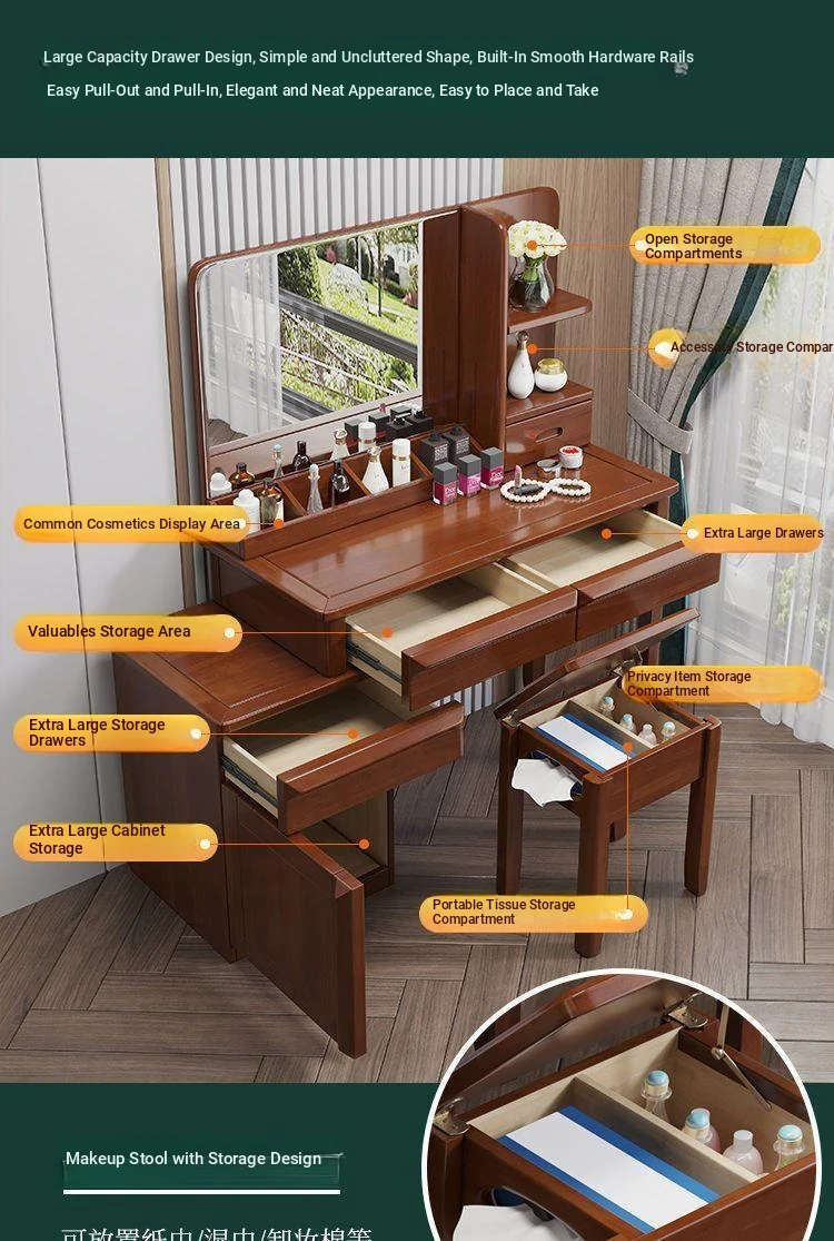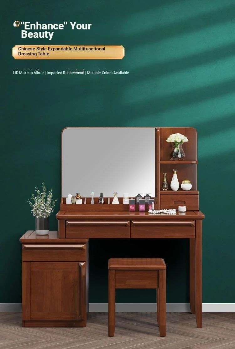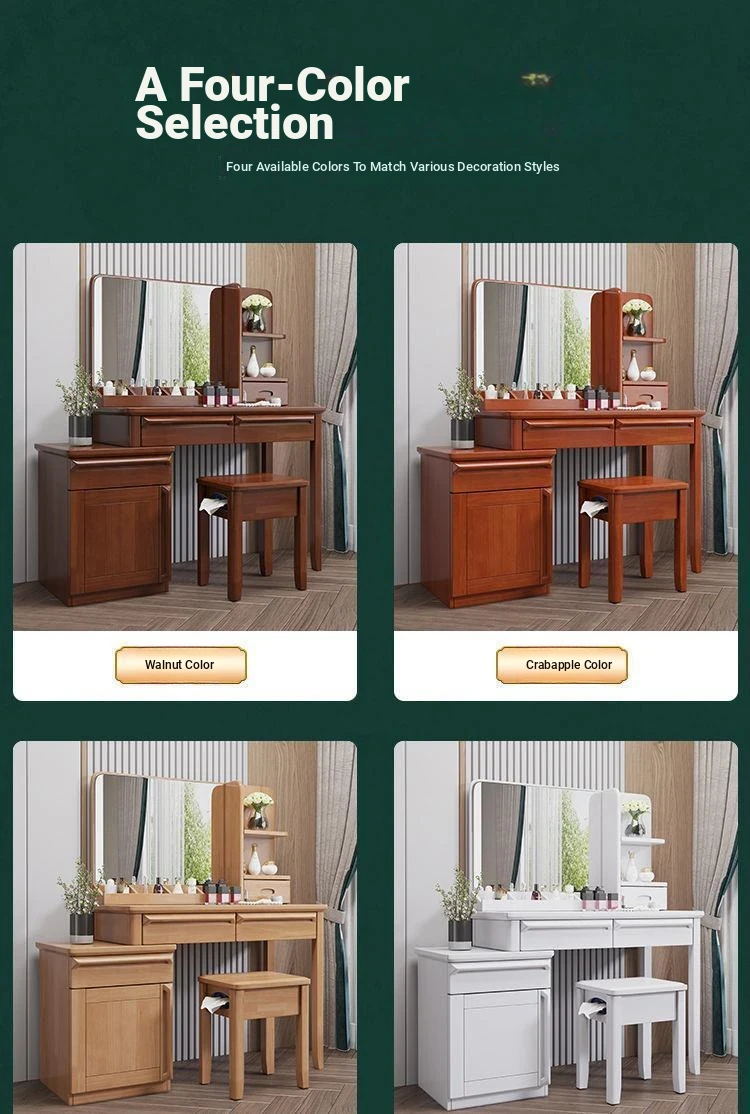 Modern Minimalist Chinese Solid Wood Vanity Table - Multi-functional Storage Cabinet for Small Spaces, Perfect Makeup Desk for Girls’ Bedrooms