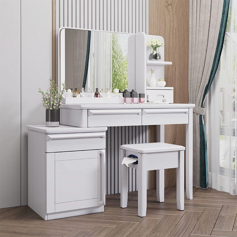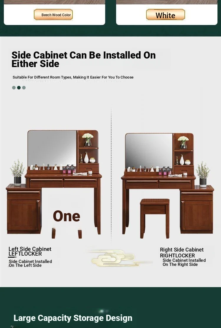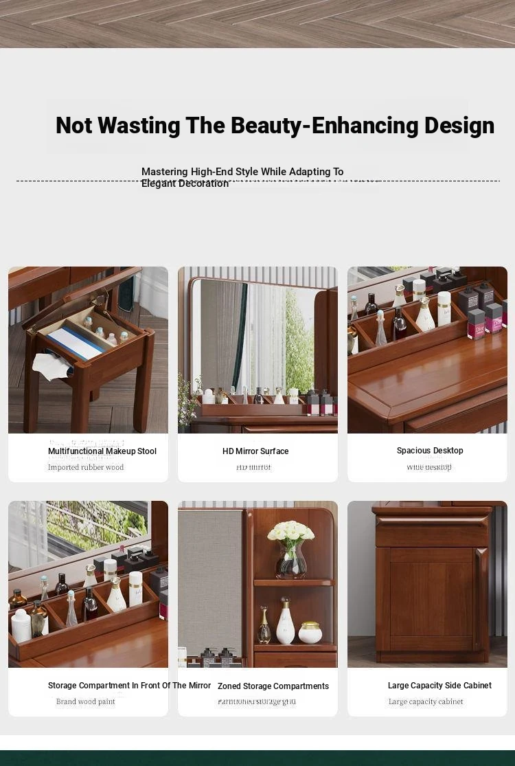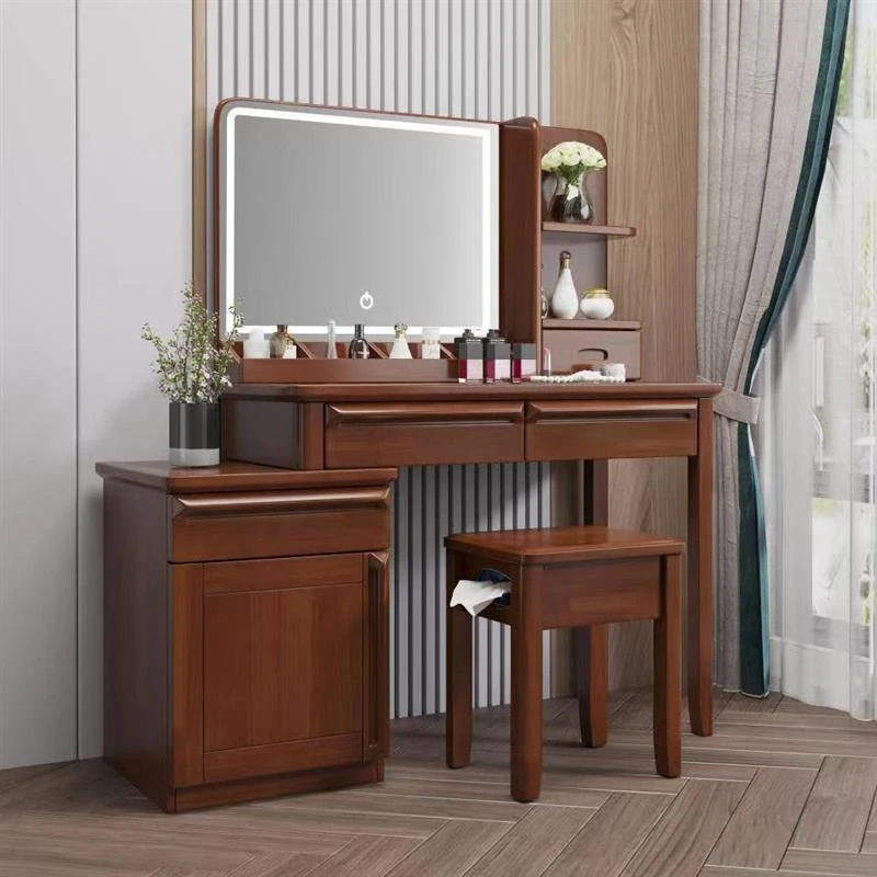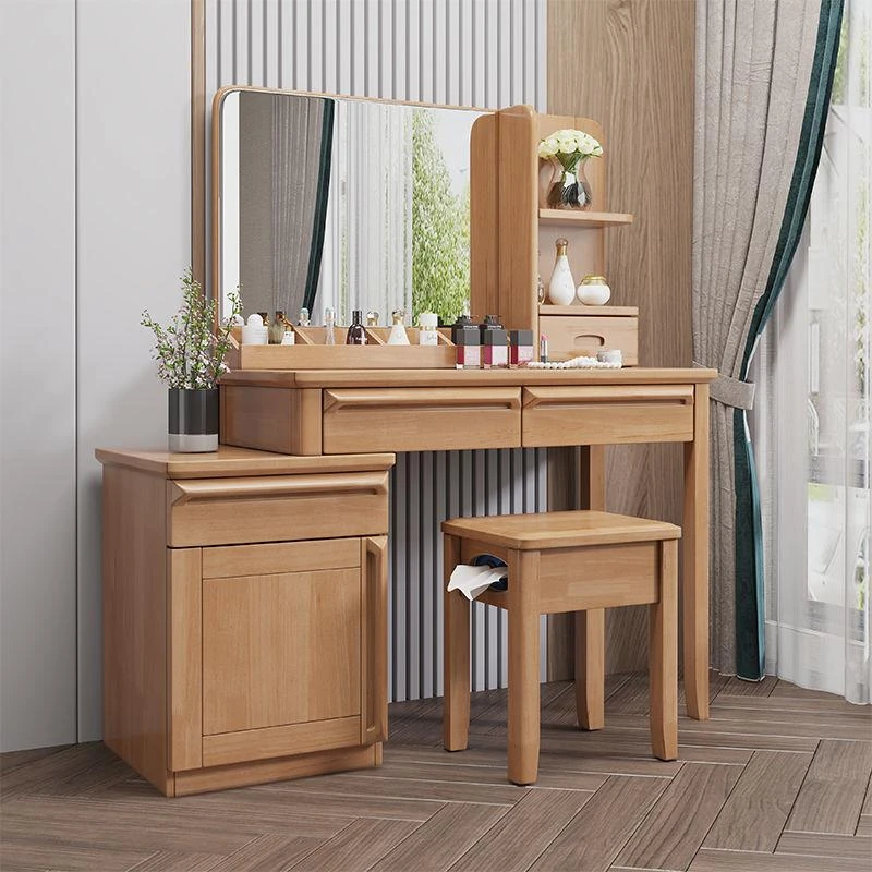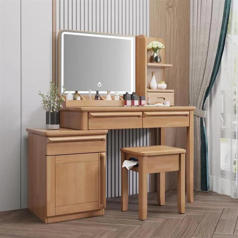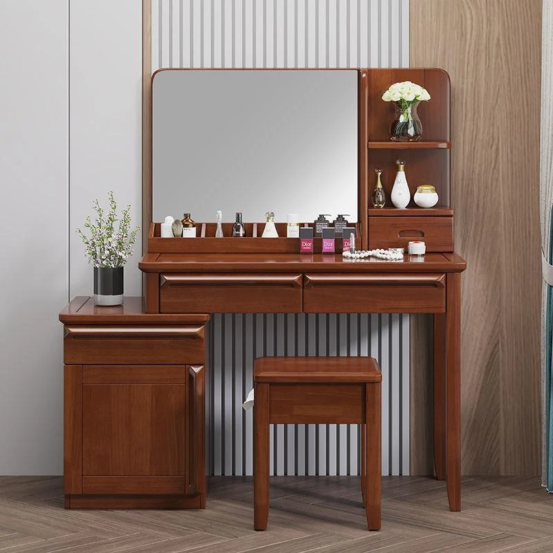 Modern Minimalist Chinese Solid Wood Vanity Table - Multi-functional Storage Cabinet for Small Spaces, Perfect Makeup Desk for Girls’ Bedrooms