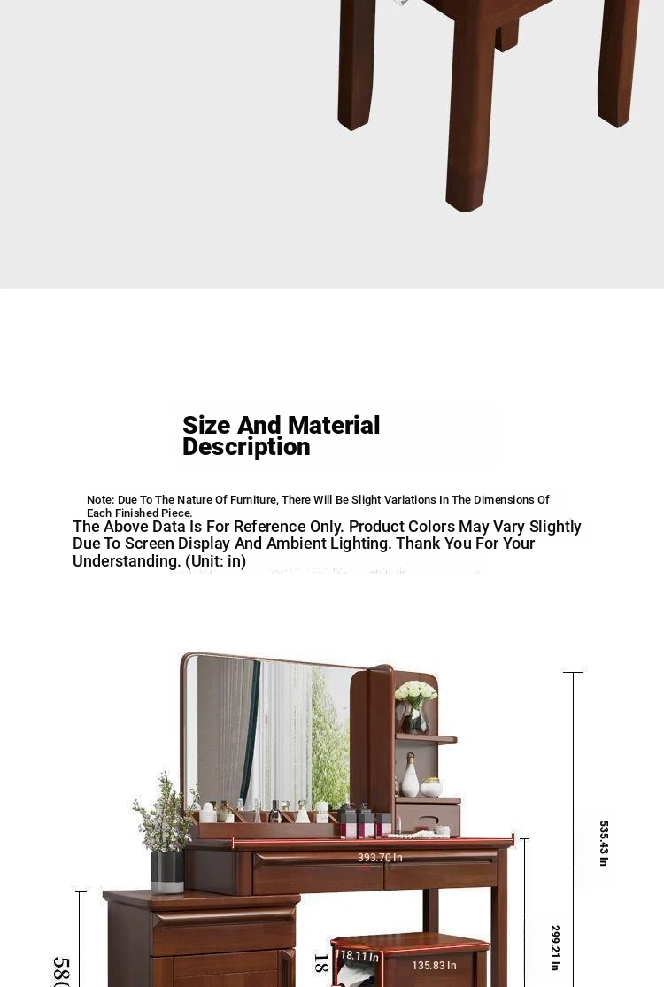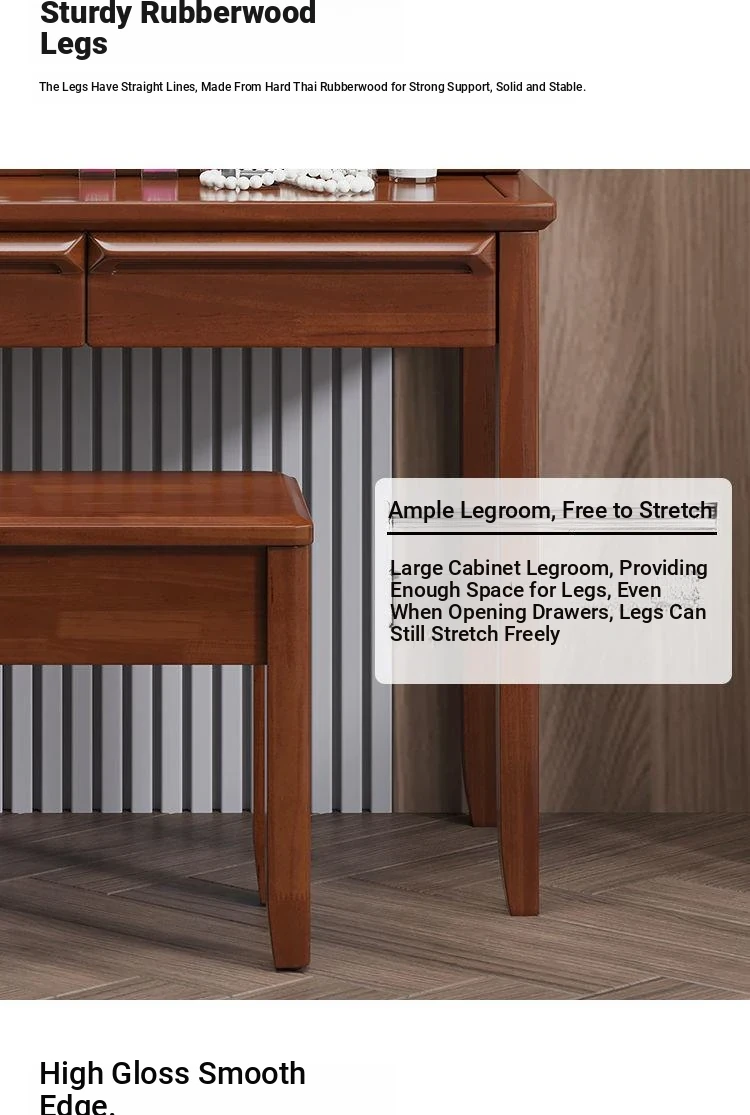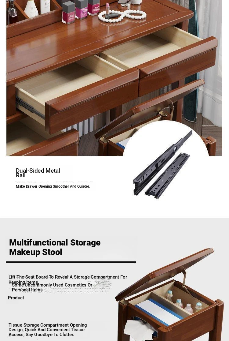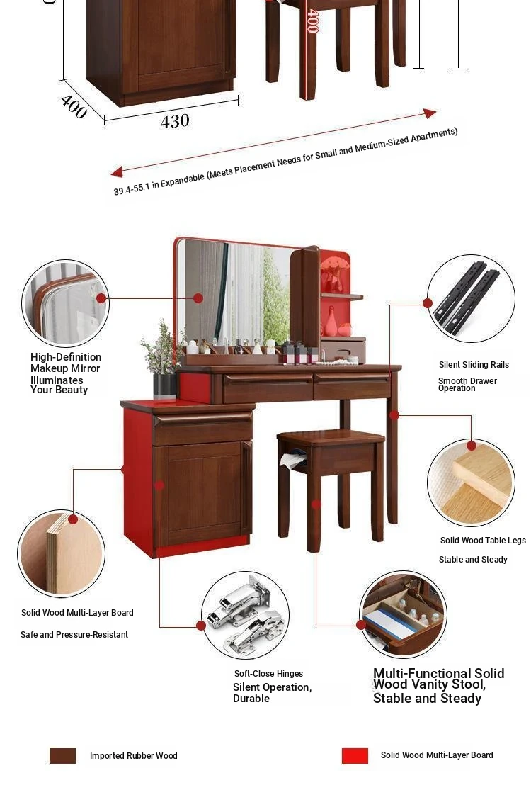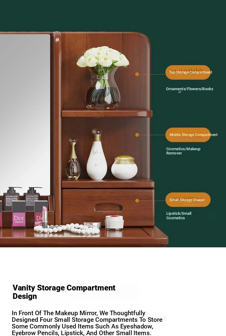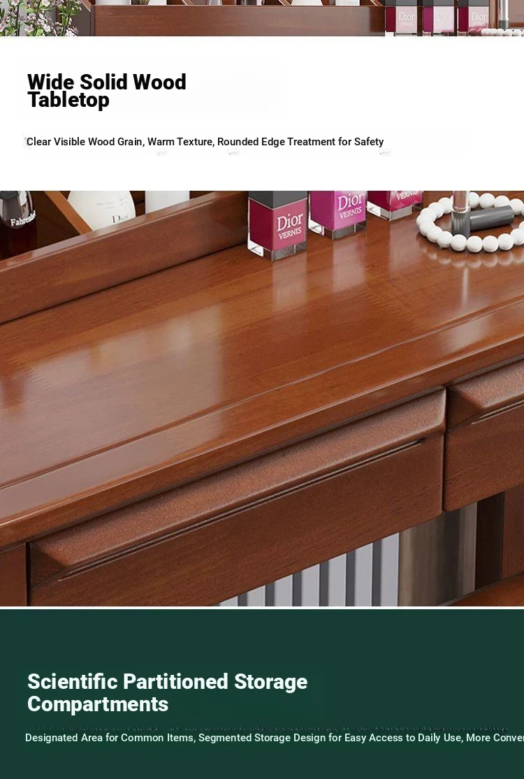 Modern Minimalist Chinese Solid Wood Vanity Table - Multi-functional Storage Cabinet for Small Spaces, Perfect Makeup Desk for Girls’ Bedrooms