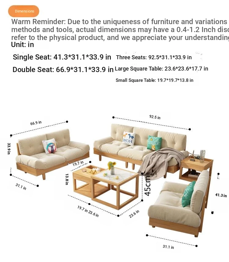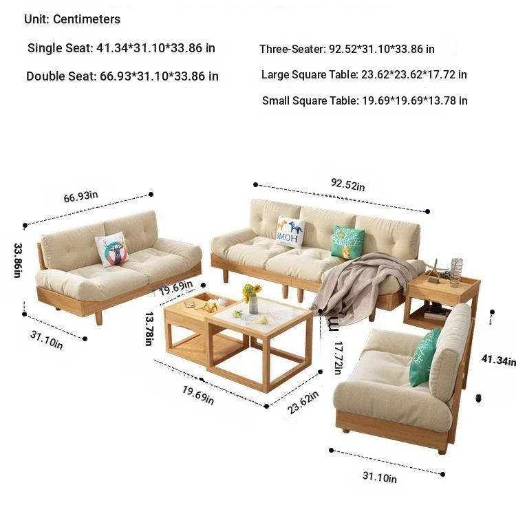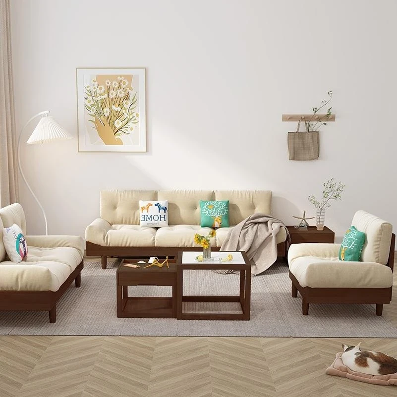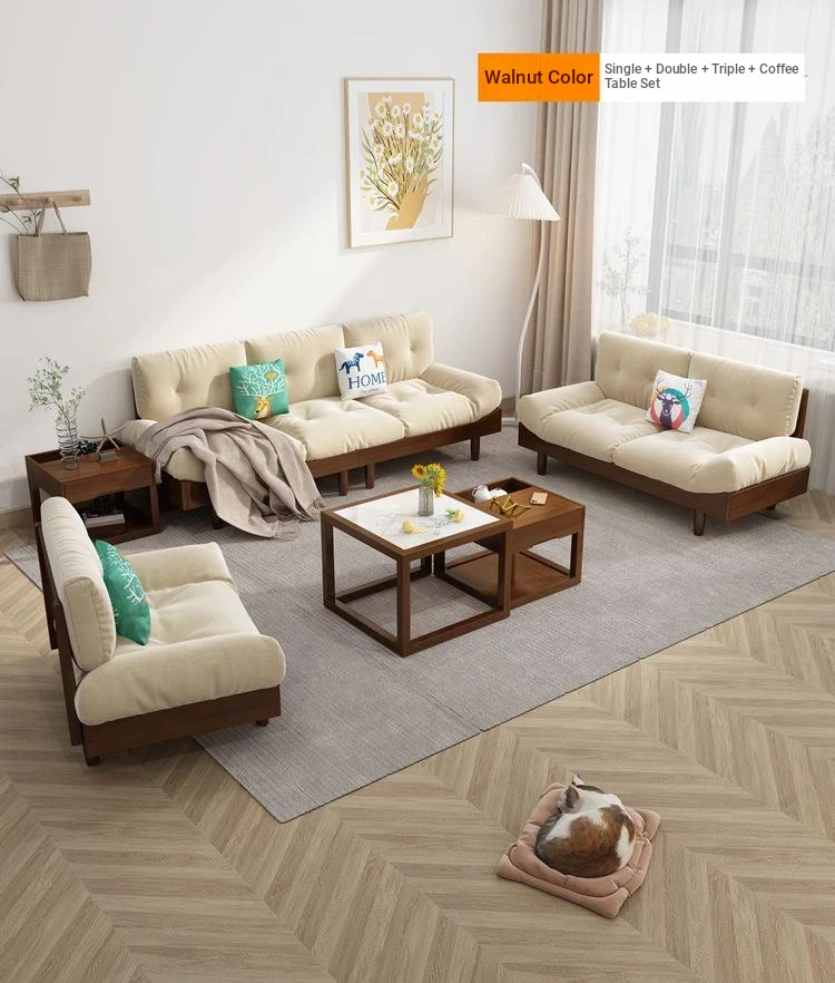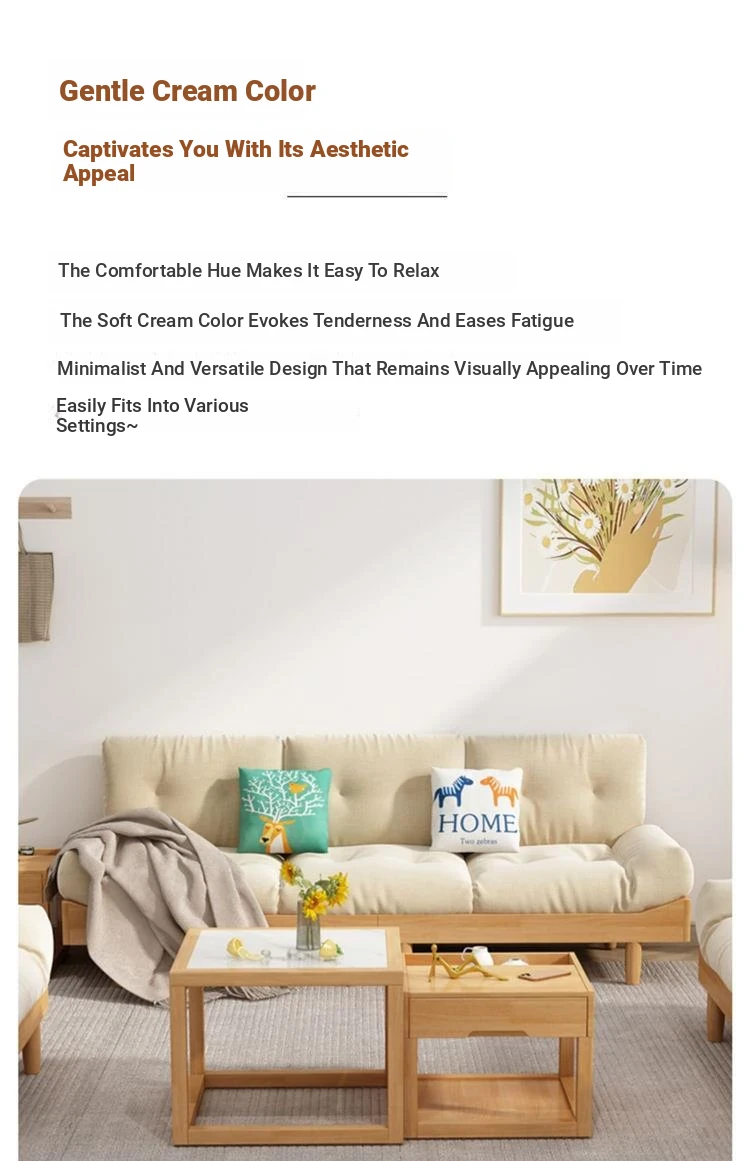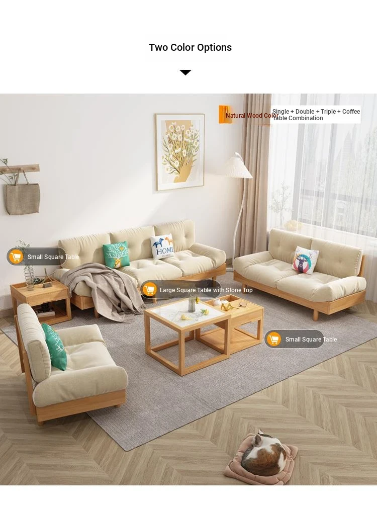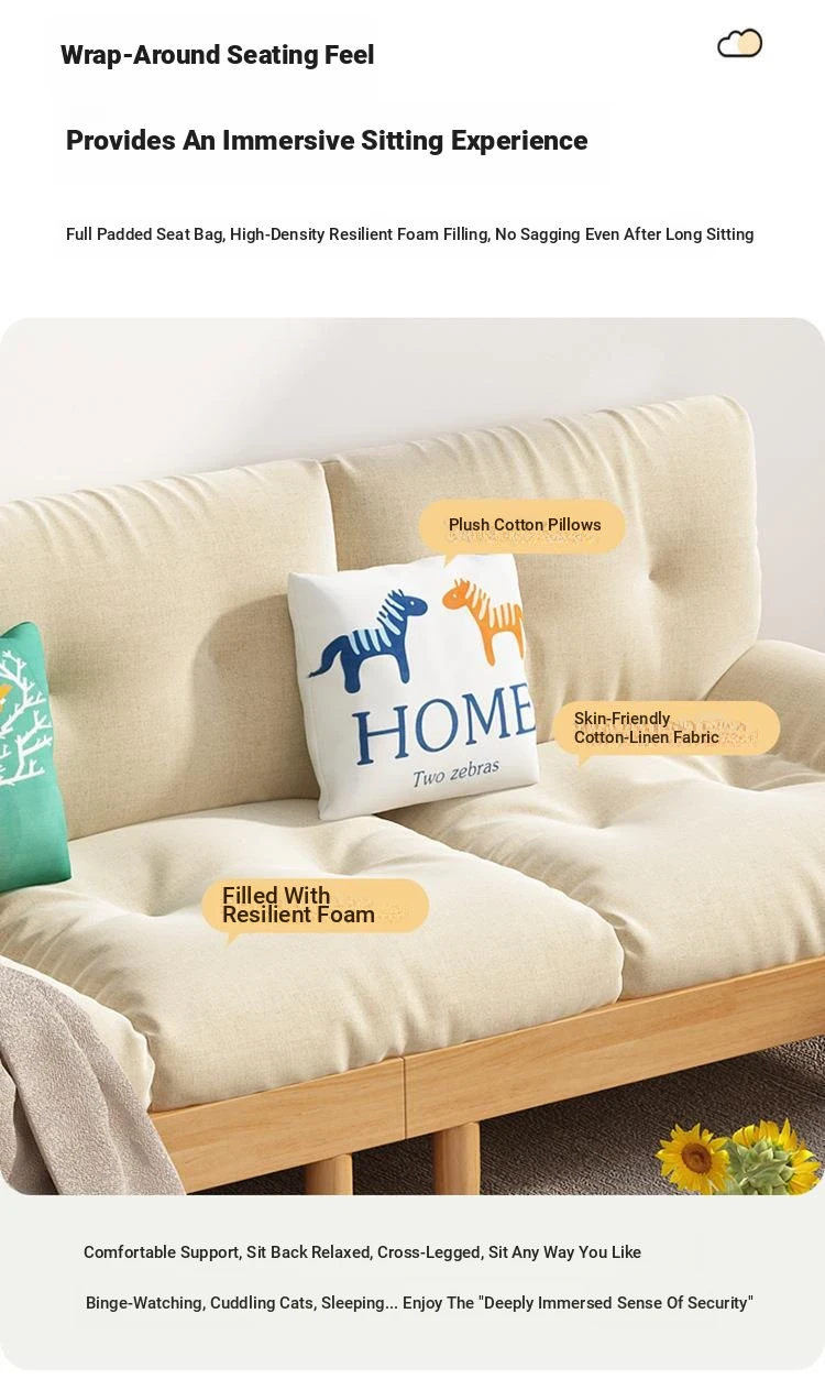 Modern Minimalist Cloud Sofa - Solid Wood & Fabric, Creamy Natural Style for Small Living Rooms, Perfect for Cozy Spaces, Stylish Two-Seater Furniture