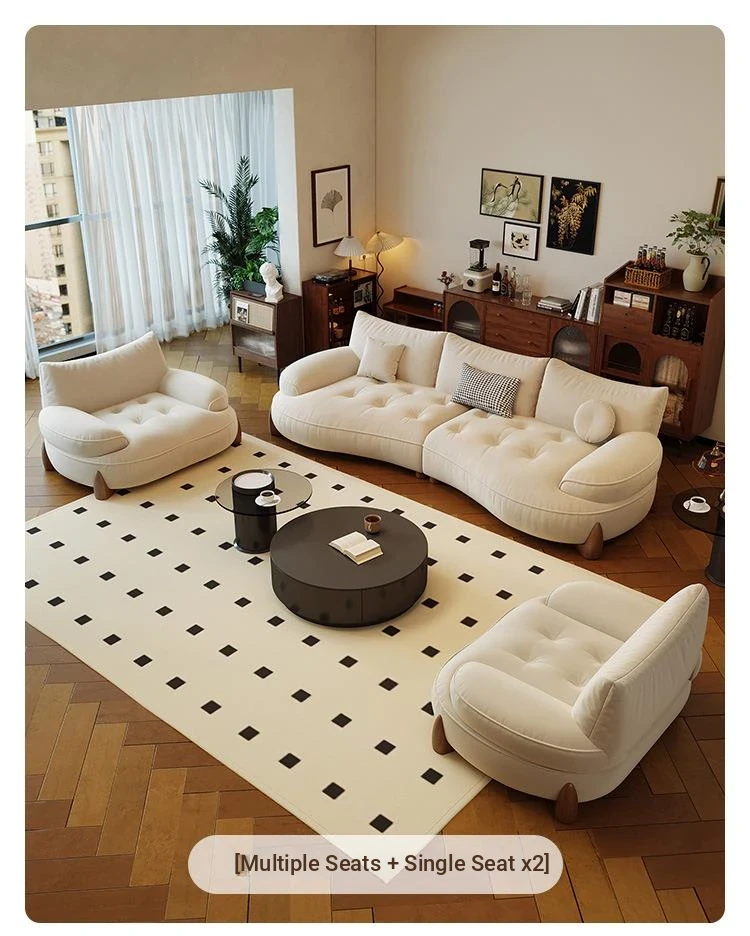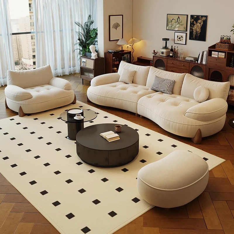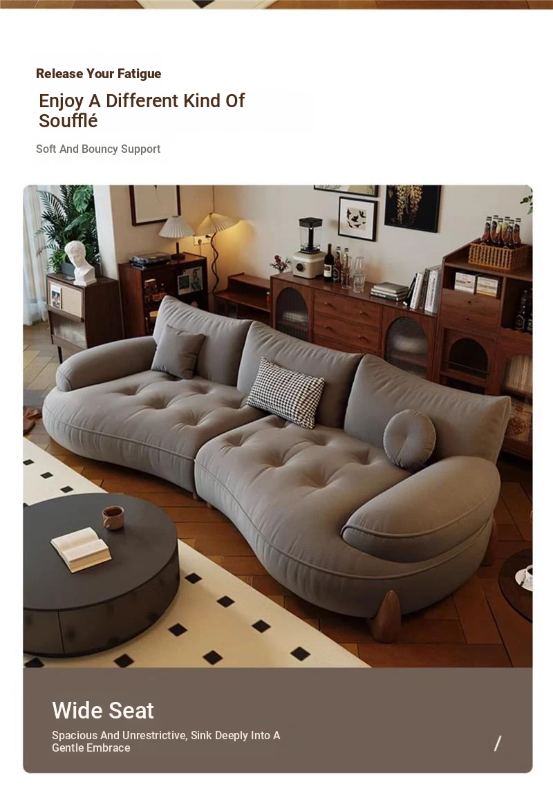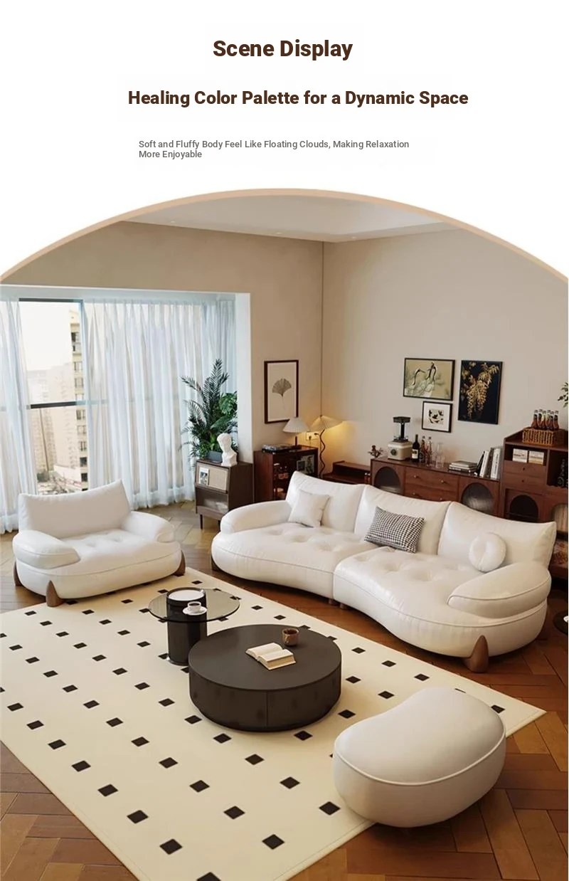 Modern Minimalist Cream-Style Boutique Hotel Sofa - Designer Curved Latex Cat Paw Multi-Person Couch for a Cozy Living Room Experience
