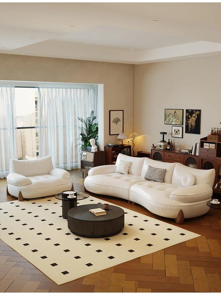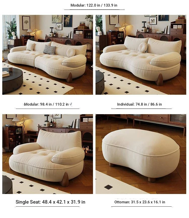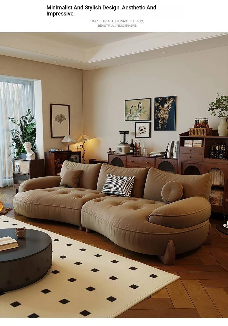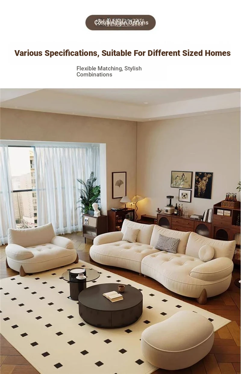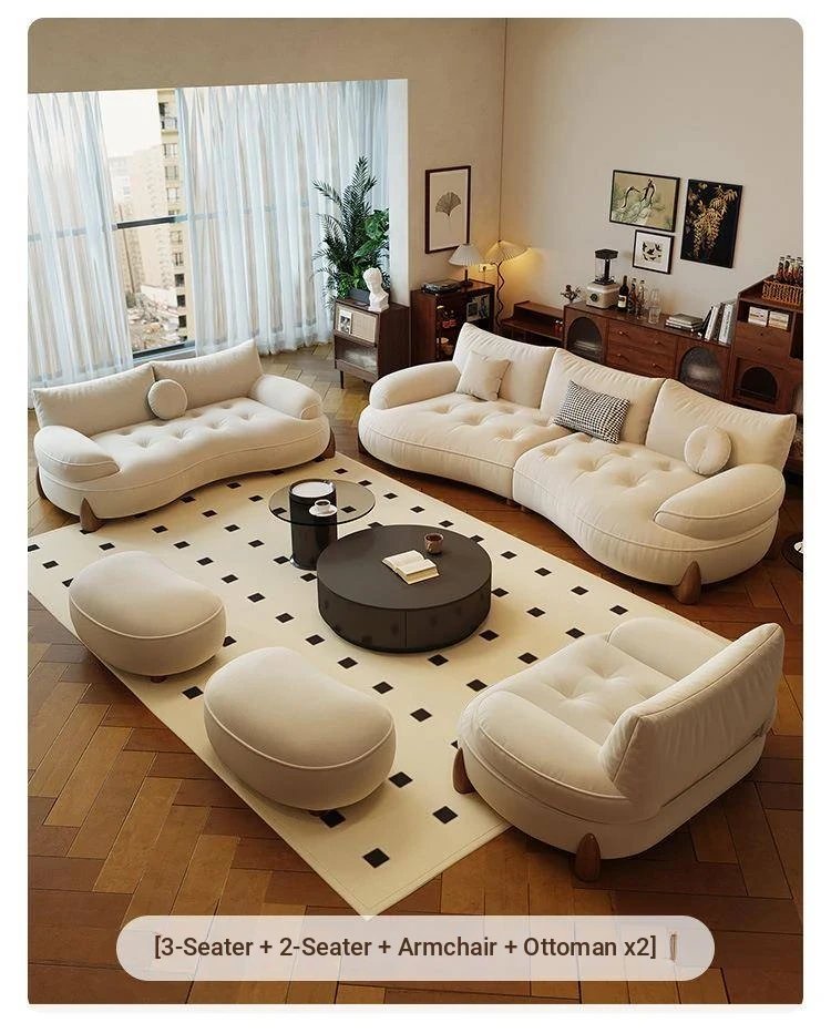 Modern Minimalist Cream-Style Boutique Hotel Sofa - Designer Curved Latex Cat Paw Multi-Person Couch for a Cozy Living Room Experience