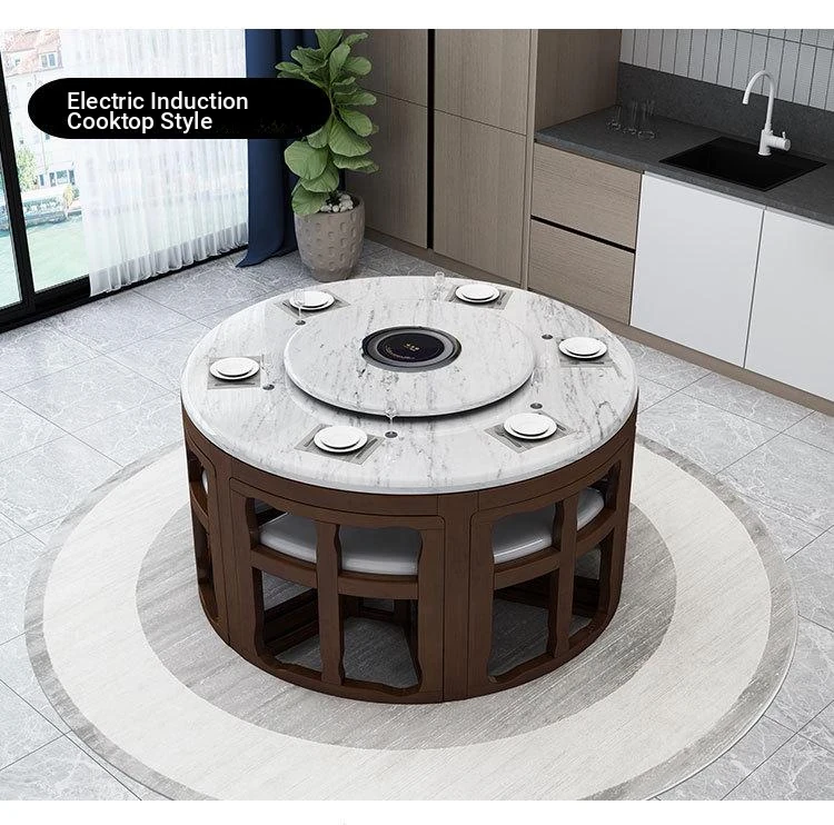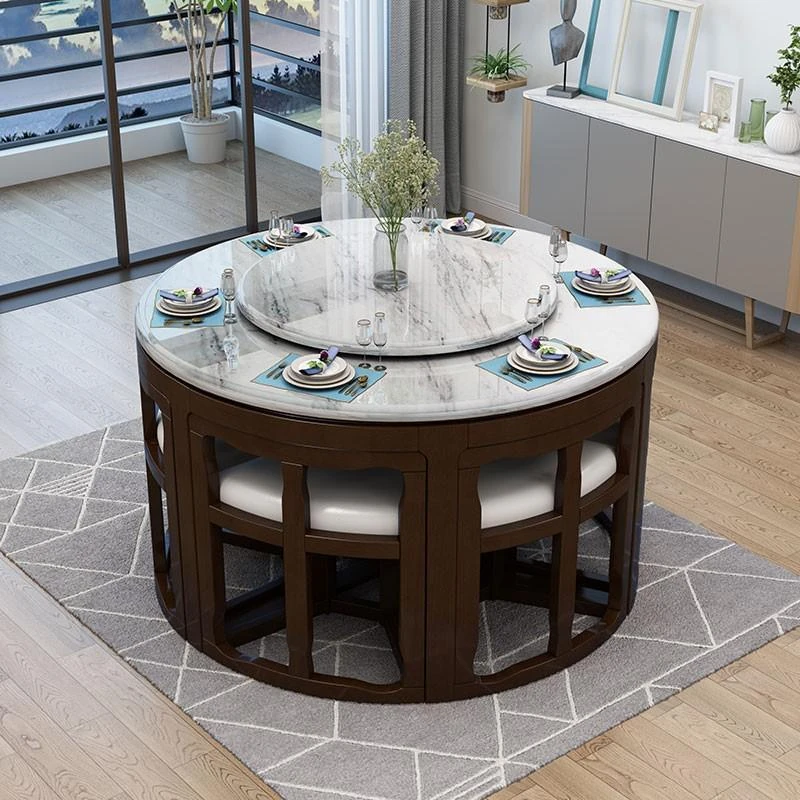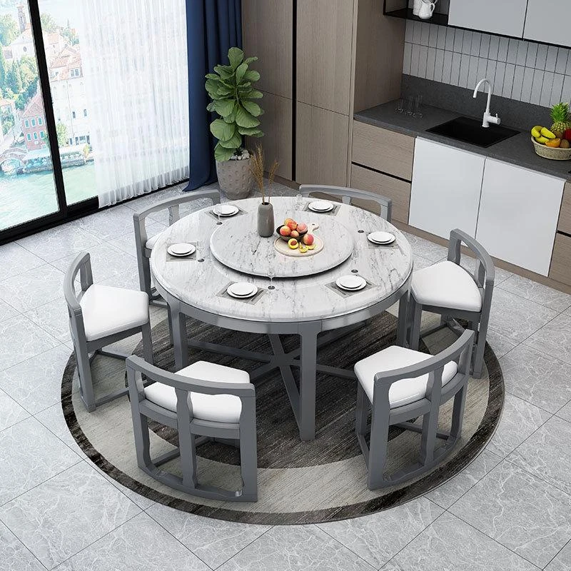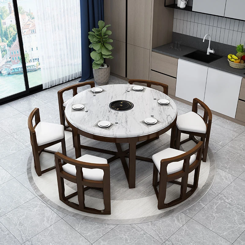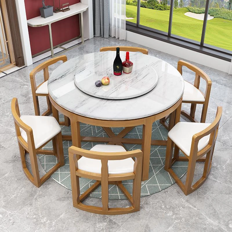 Round Hu + White (1+6 Chair Surface Solid Wood)