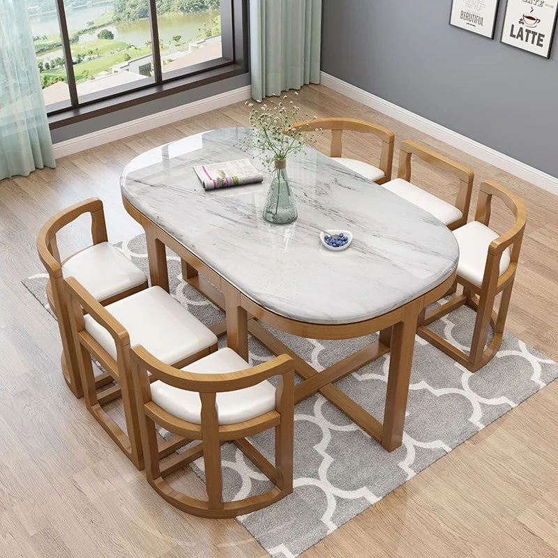 Rectangular Hu Bai (1+6 Chair Surface Solid Wood)