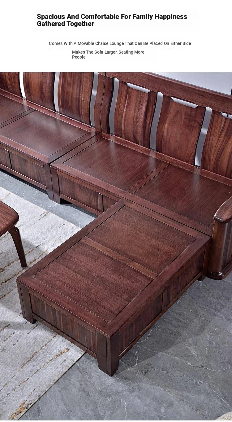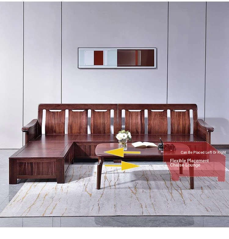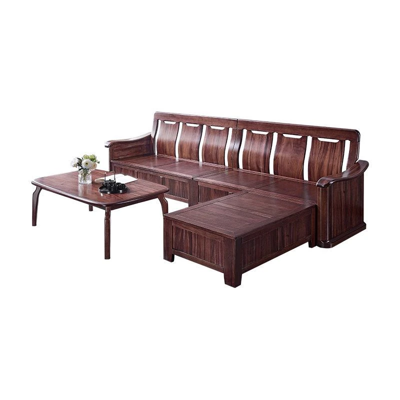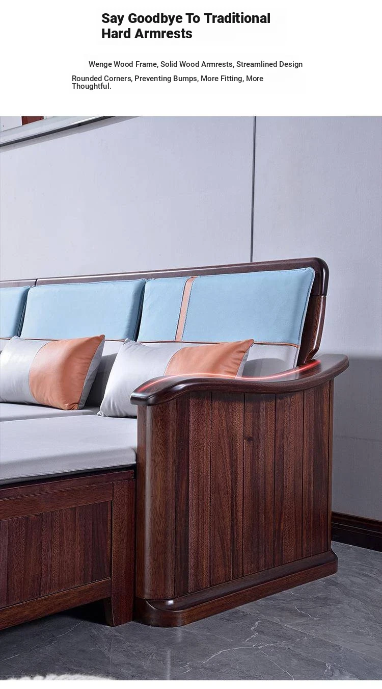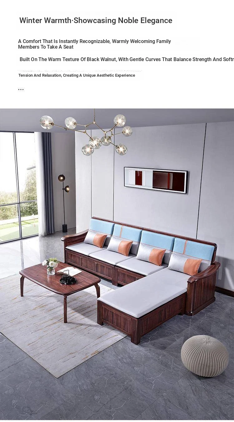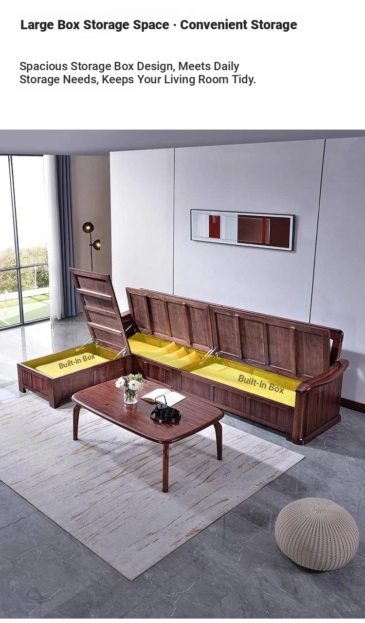 Modern New Chinese Style Solid Wood Sofa with Black Gold Wood - Space-Saving, All-Season Fabric Sofa with High Storage Box for Small Living Rooms