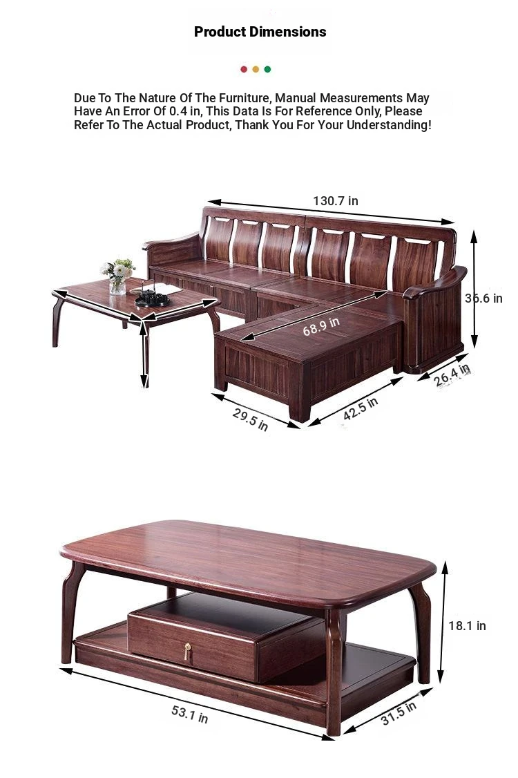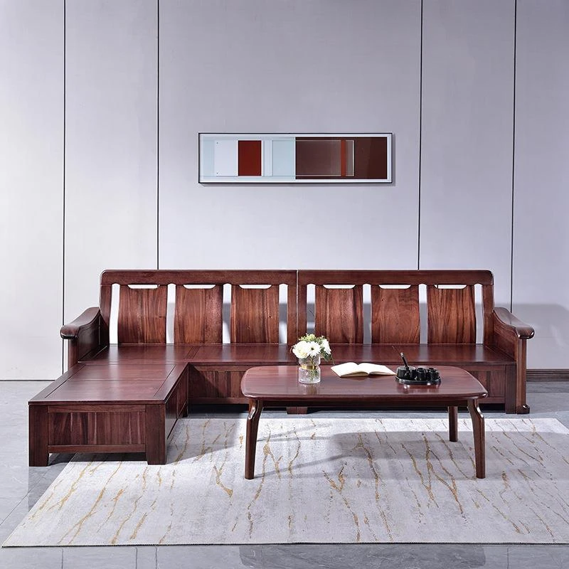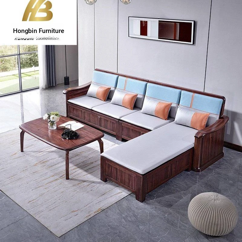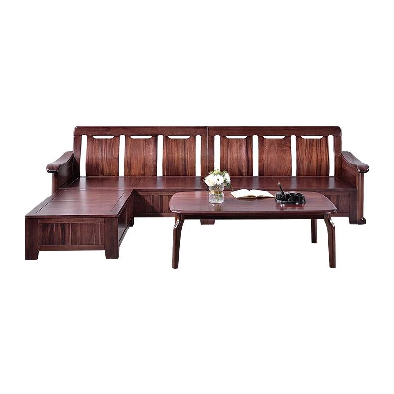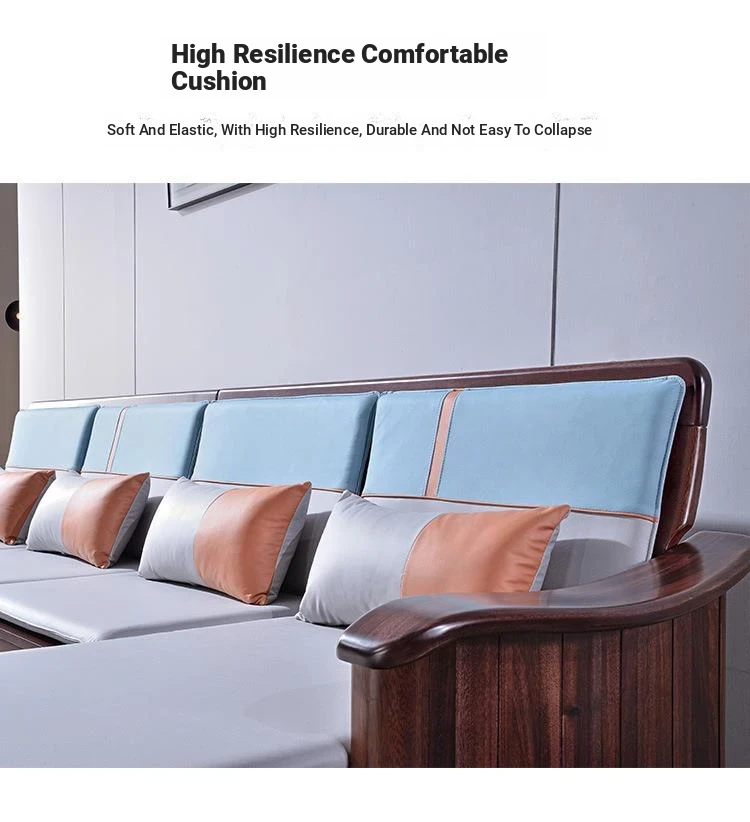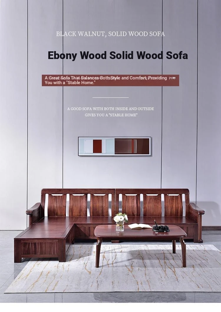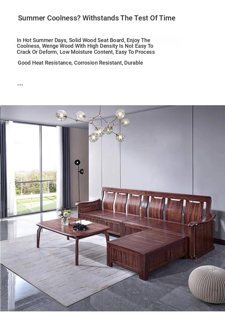 Modern New Chinese Style Solid Wood Sofa with Black Gold Wood - Space-Saving, All-Season Fabric Sofa with High Storage Box for Small Living Rooms