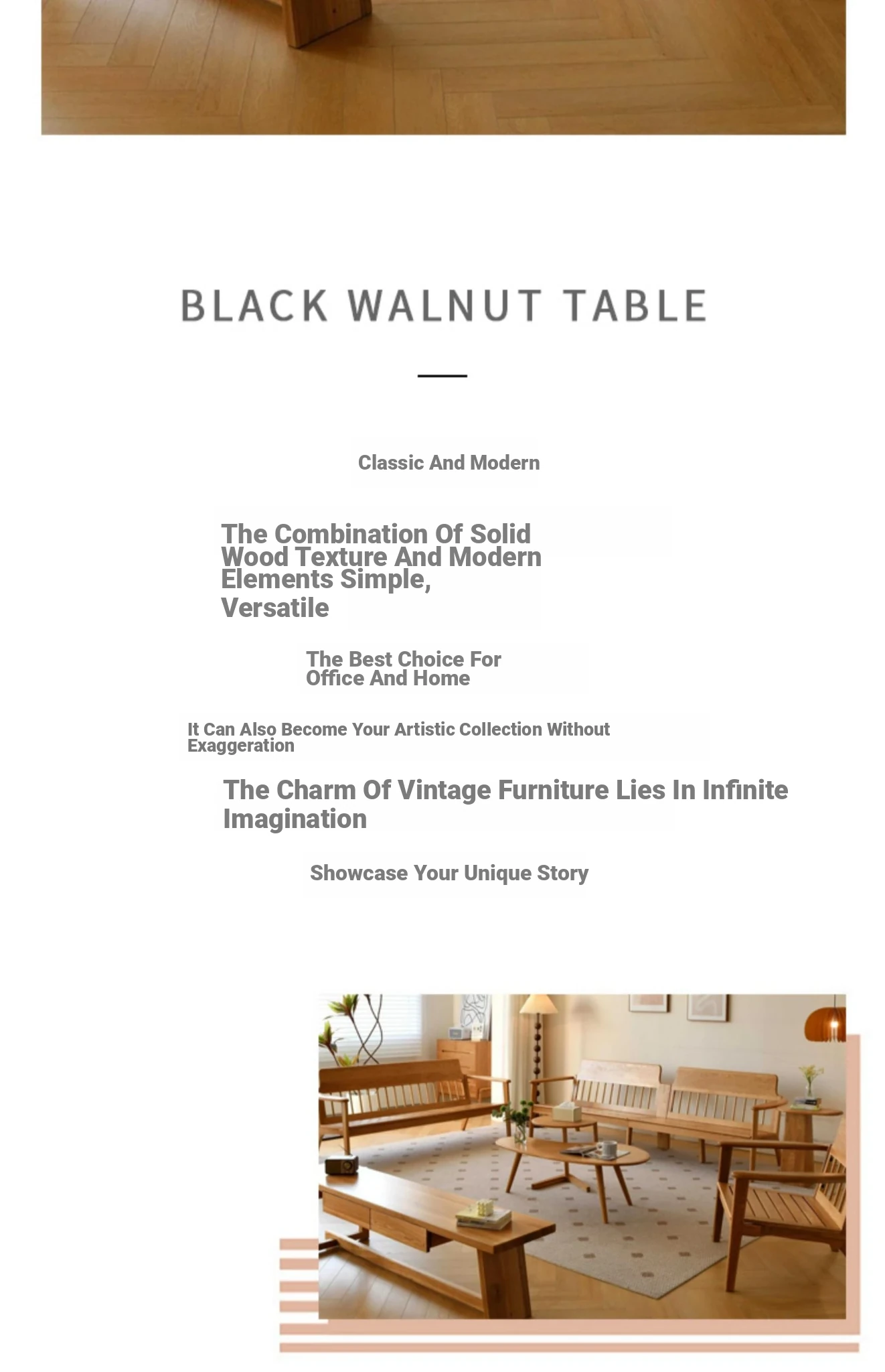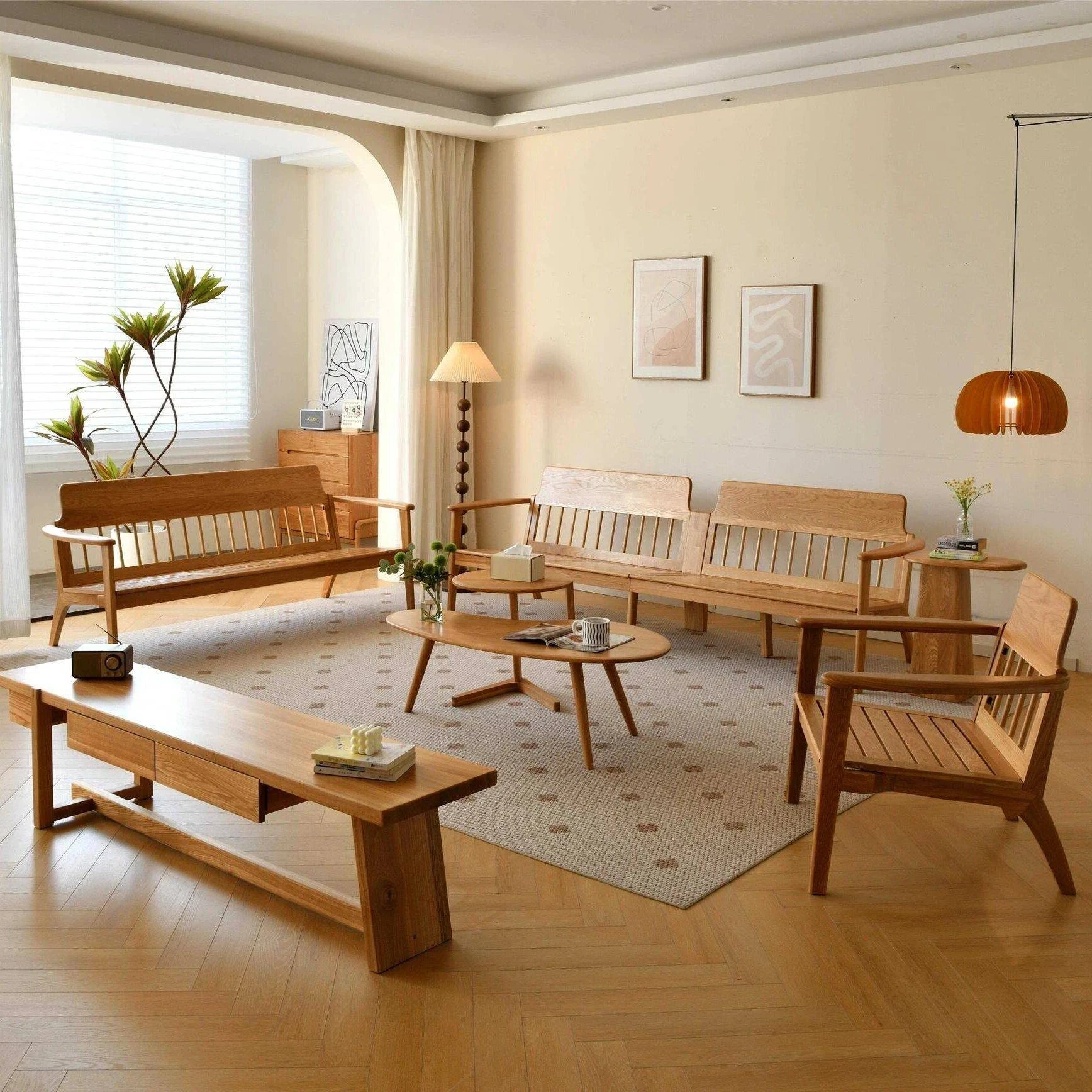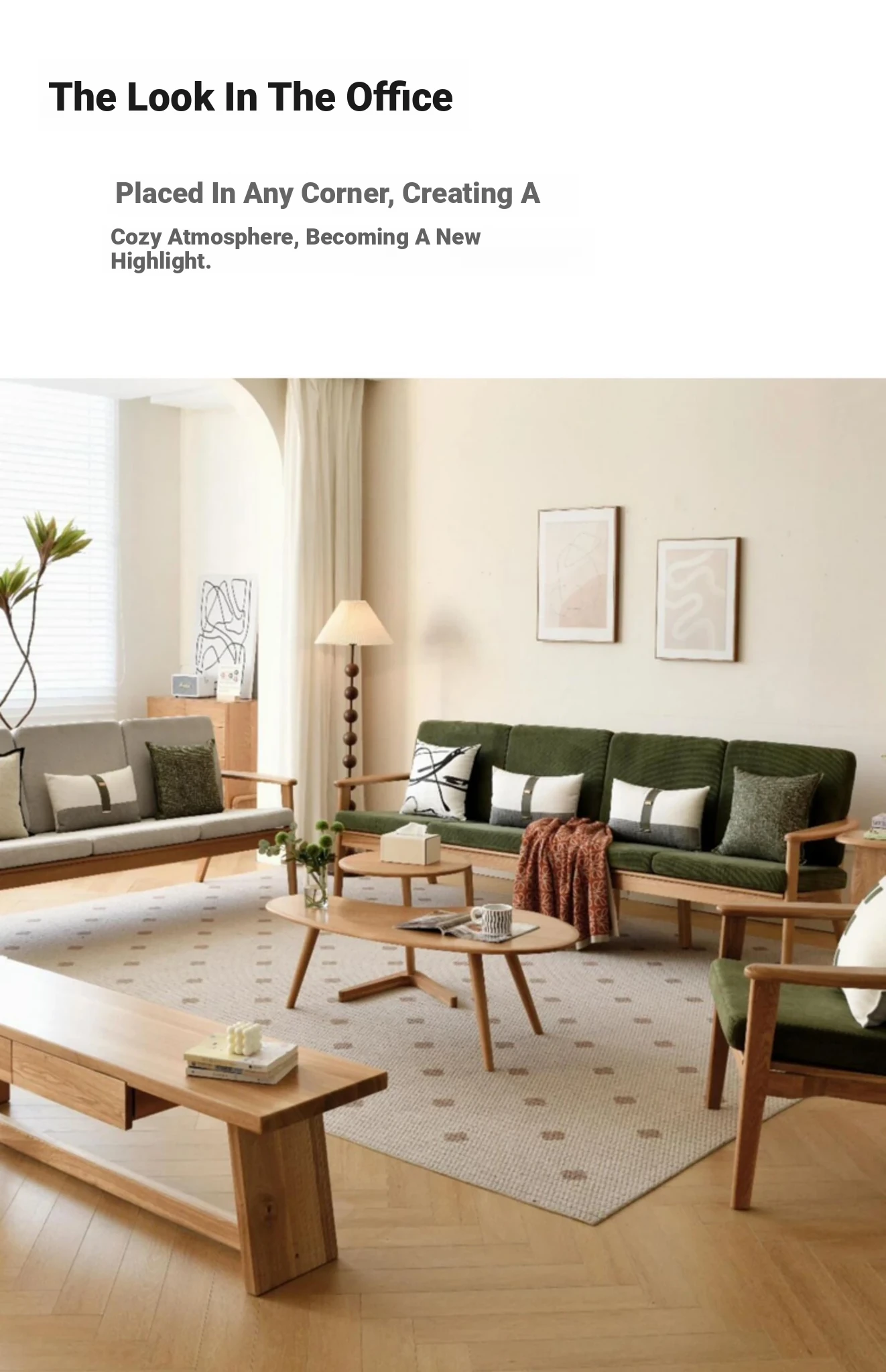 "Modern North American Walnut Coffee Table and Sofa Set - Versatile Winter and Summer Design for Spacious Living Rooms, Crafted from High-Quality Ash Wood"