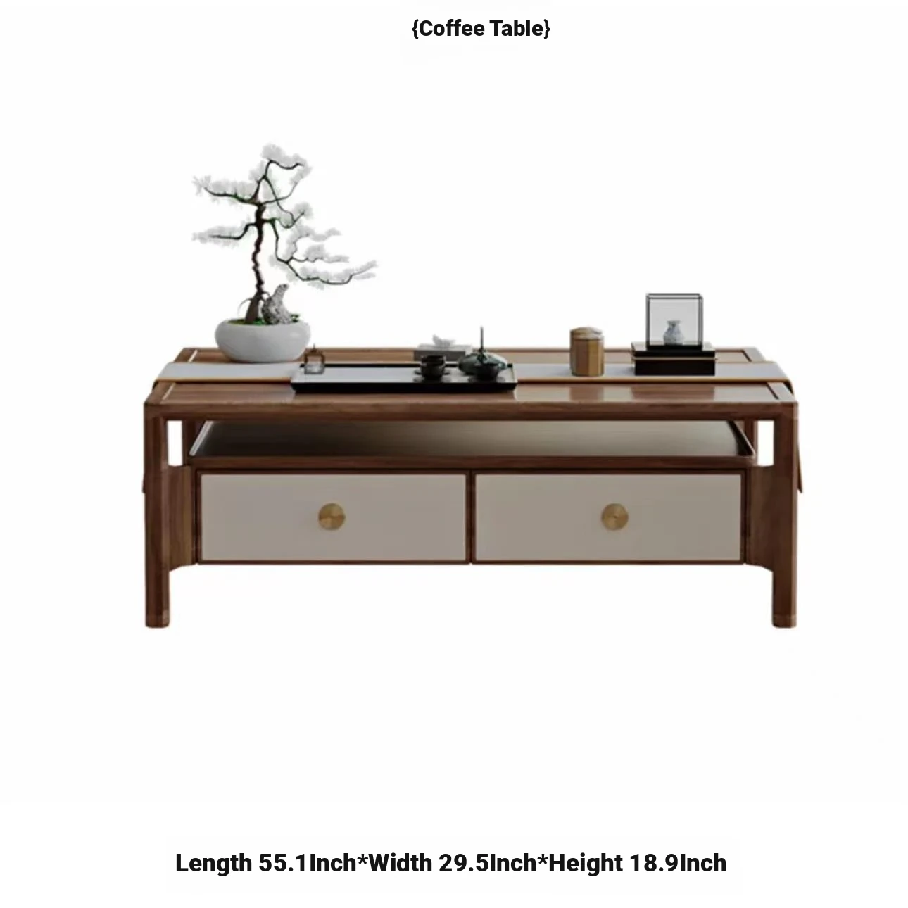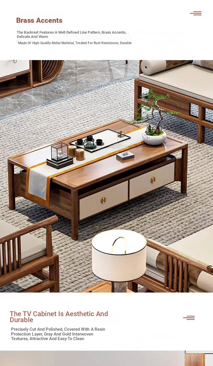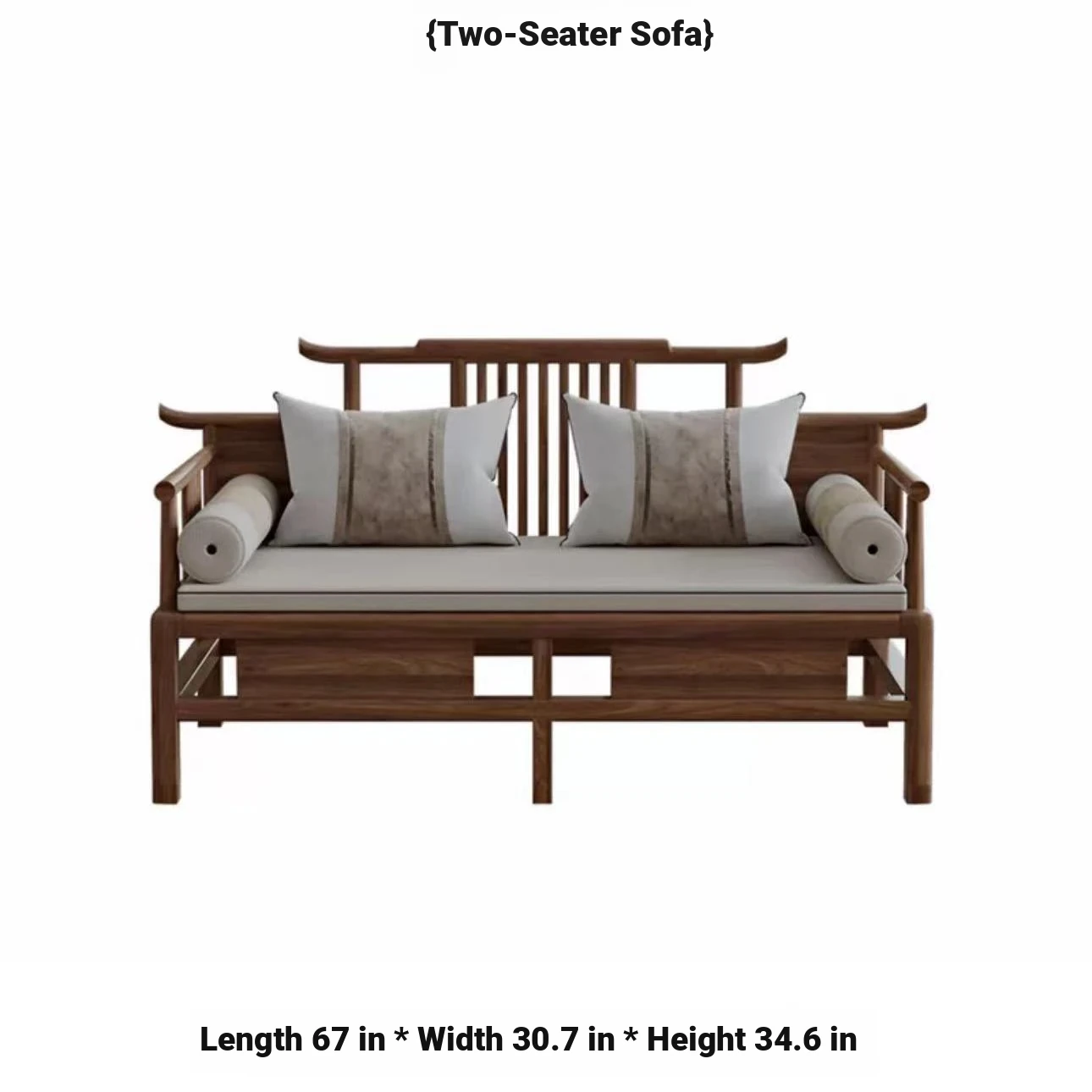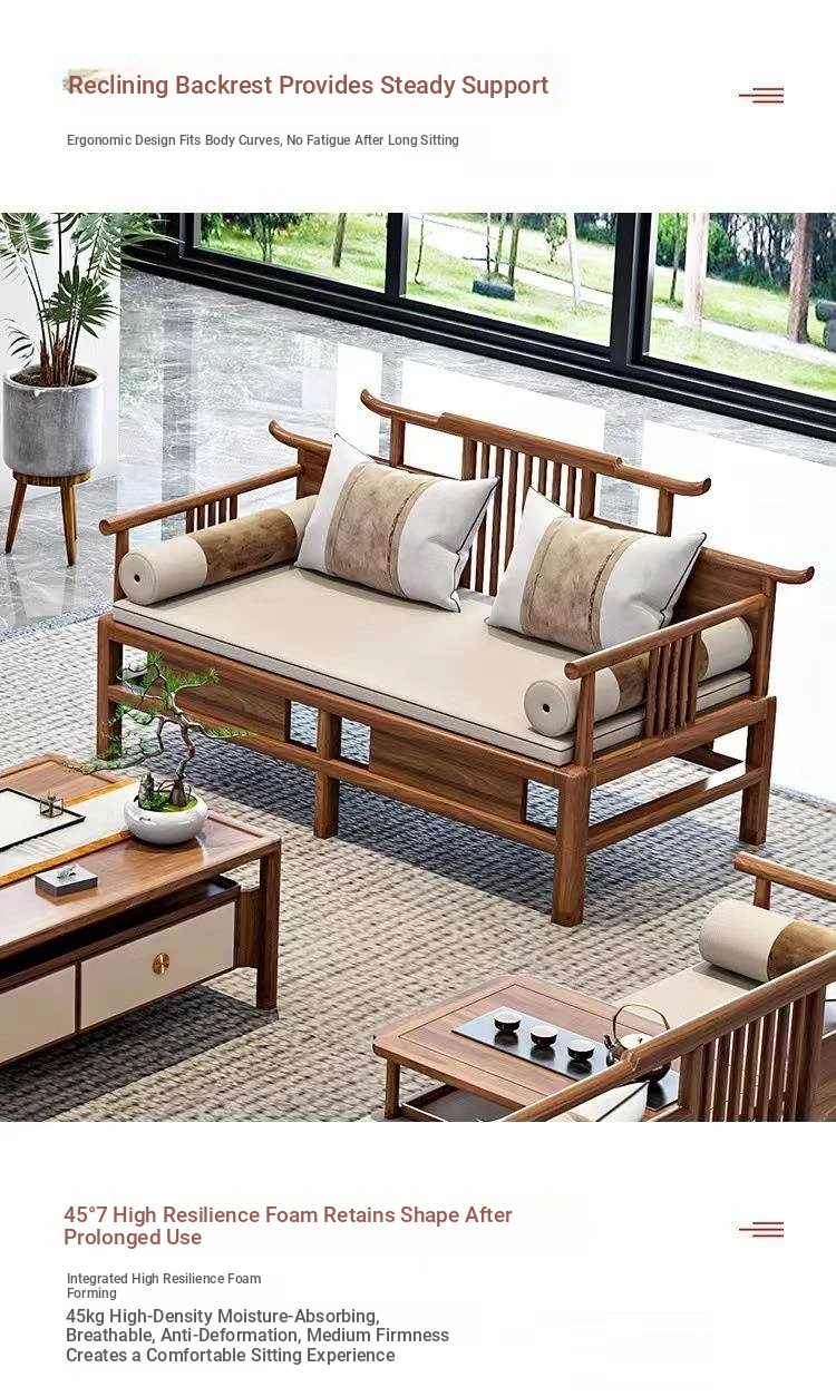 Modern Zen Style Solid Wood Sofa Set for Living Room - Versatile Ash Wood Furniture for Villas, Perfect for All Seasons and Home Sizes