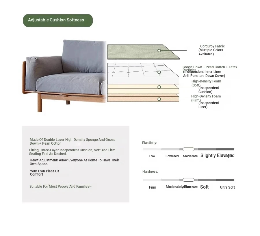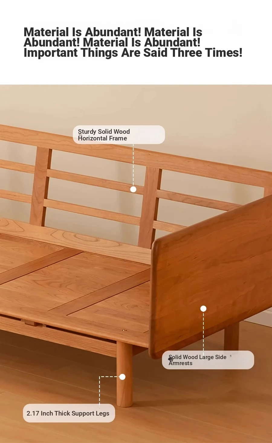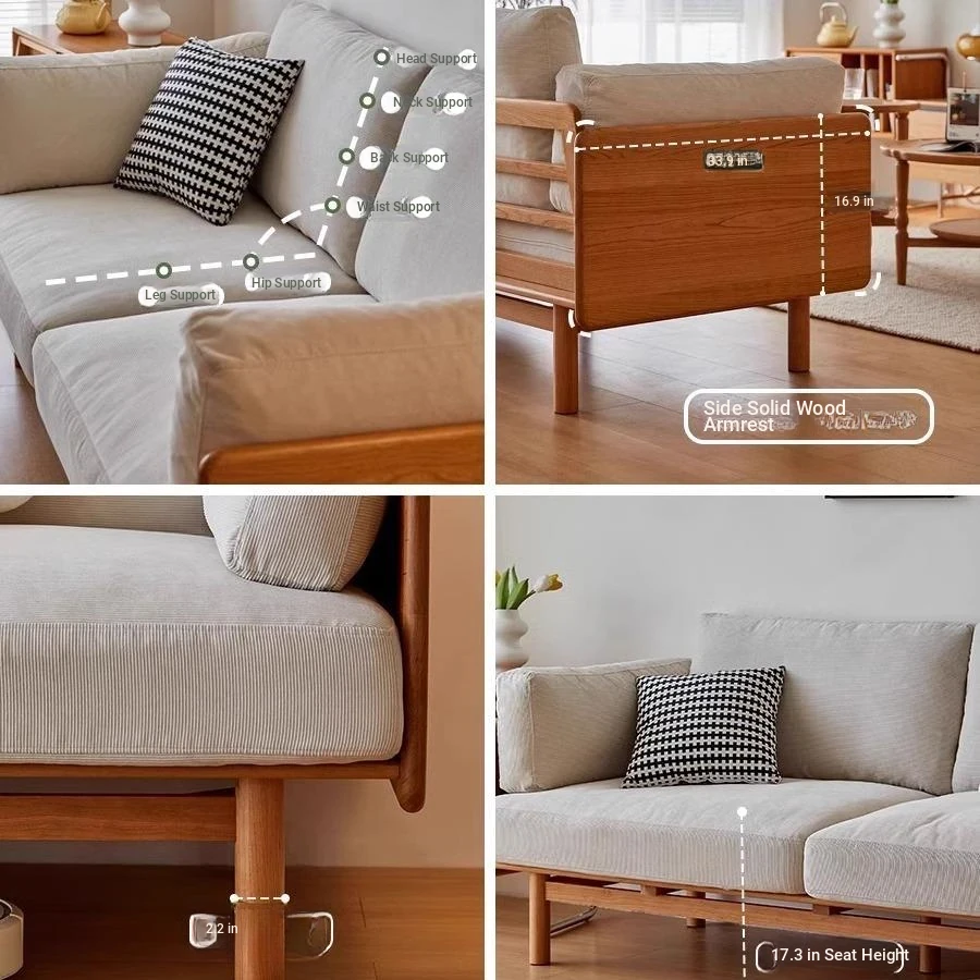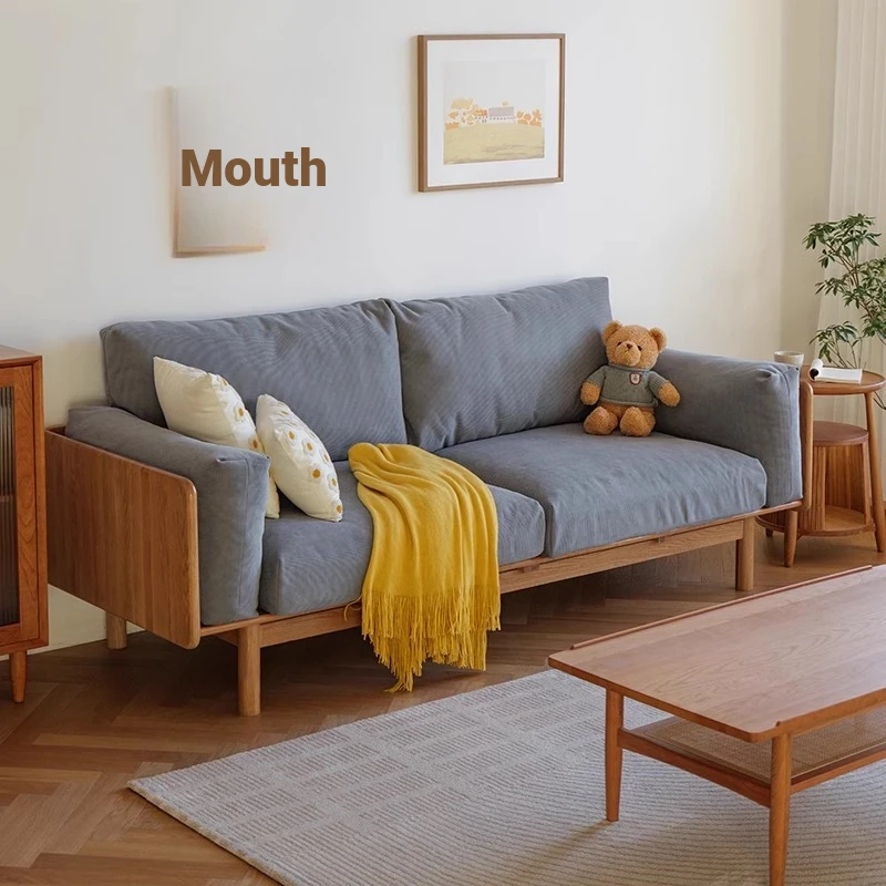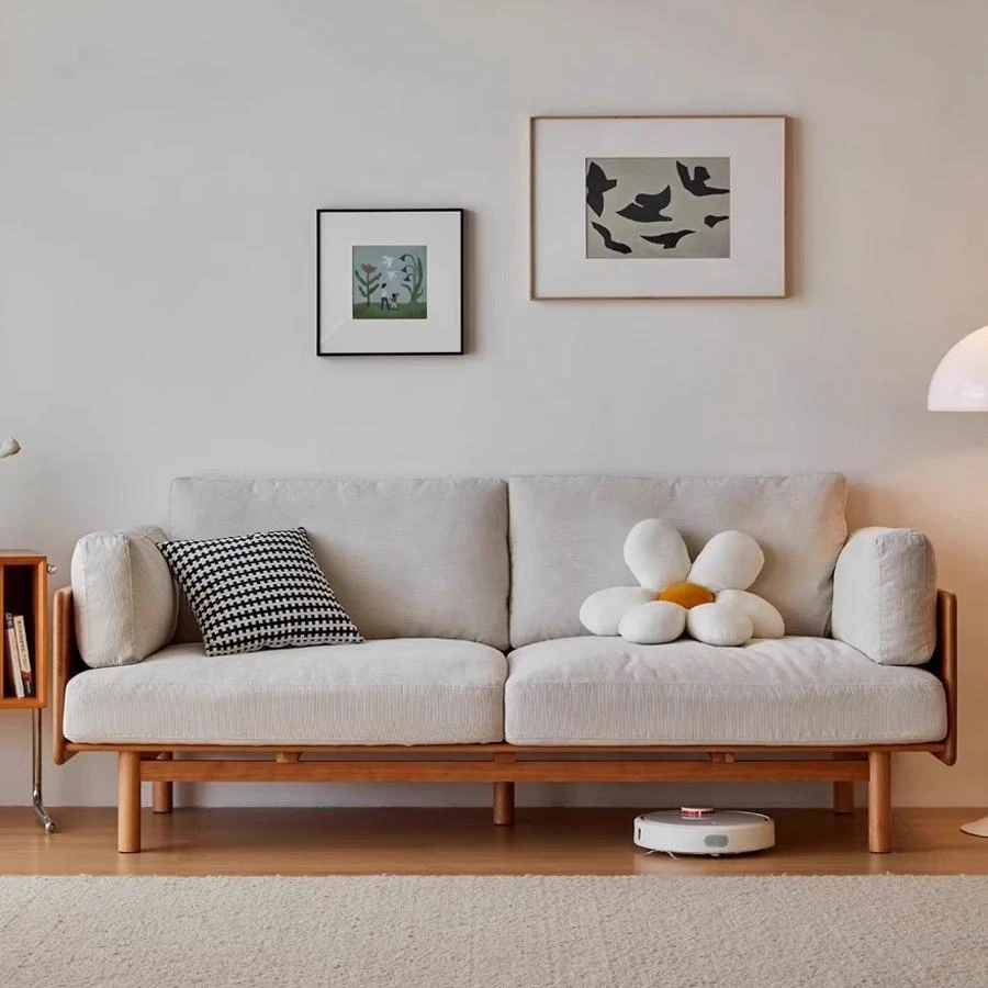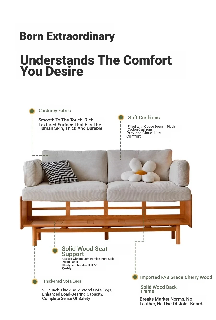 Nordic Cherry Wood Nanshan Sofa - Modern Minimalist 3-Seater Fabric Sofa for Small Spaces, Featuring Solid Wood and Individual Seating Options for Ultimate Comfort and Style.
