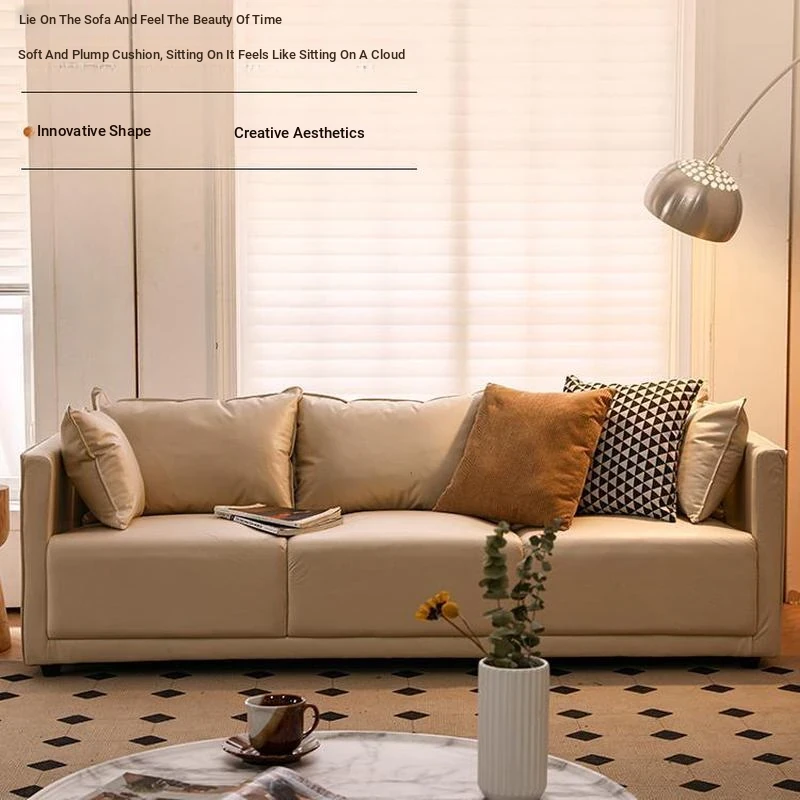 Nordic Cream Style Sofa for Small Spaces - Double & Triple Seater, Cat Scratch Resistant Tech Fabric, Spring Sofa for Living Room, Trendy Design