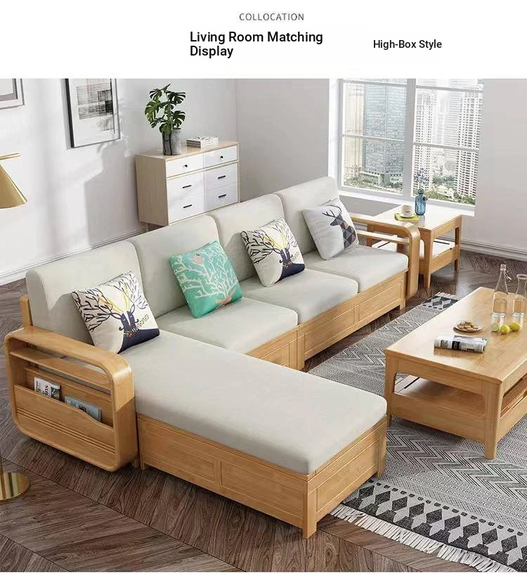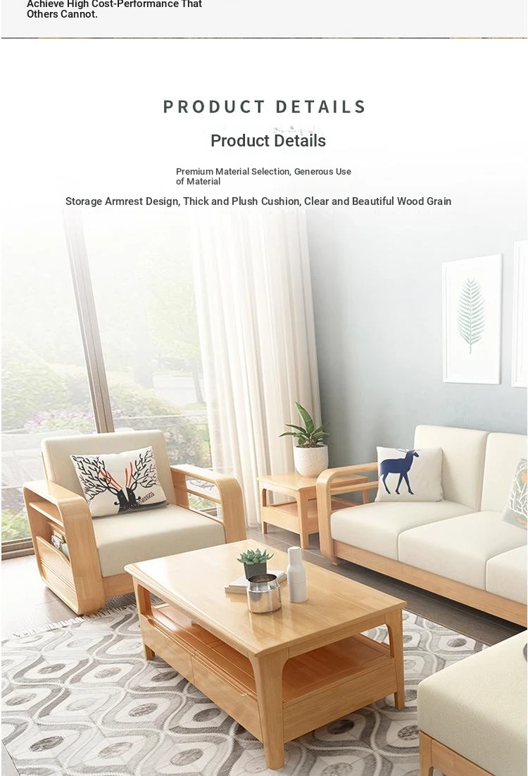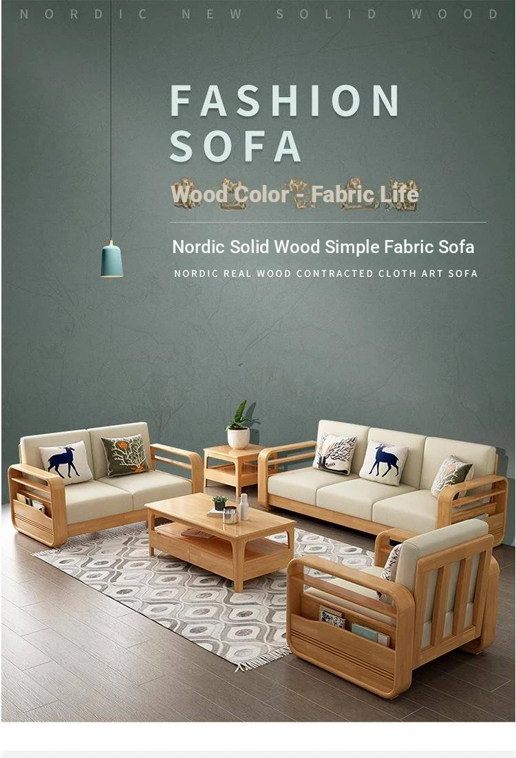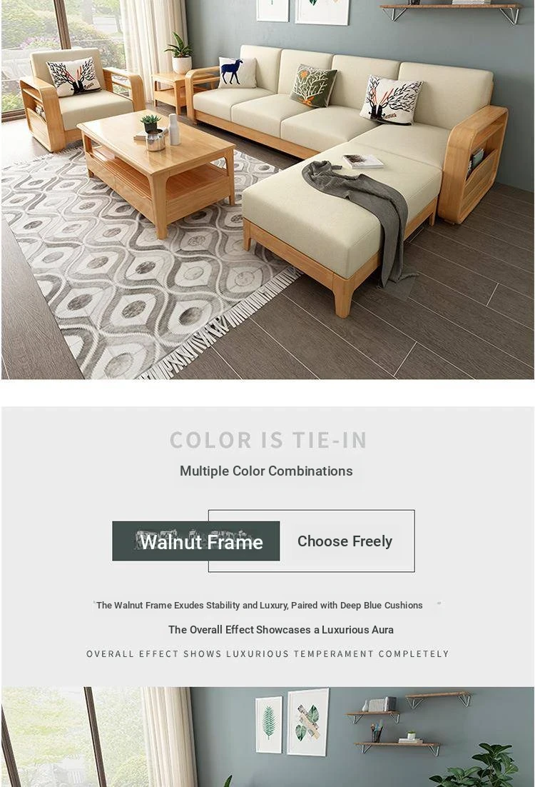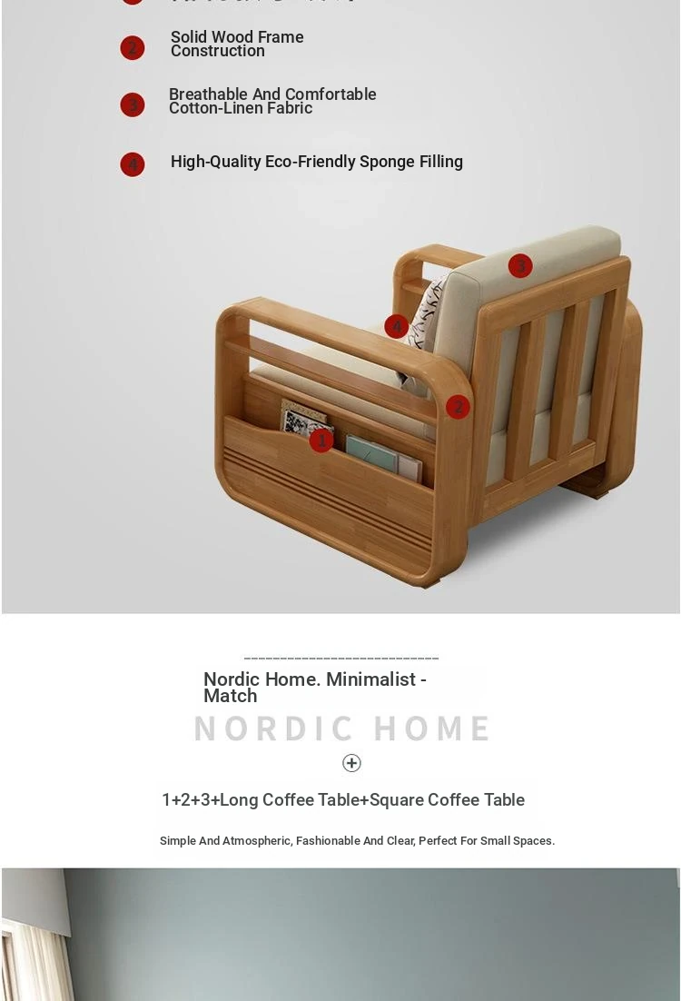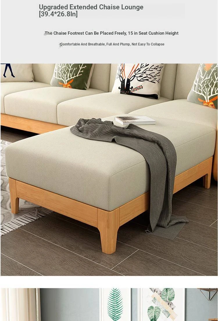 Nordic Solid Wood Sofa Set with Chaise Lounge – Modern Minimalist Design for Small Living Rooms, Perfect for Home Use, Made of Durable Rubber Wood.