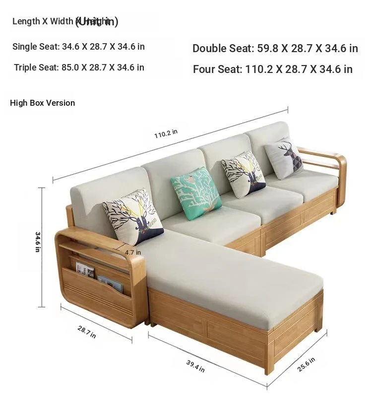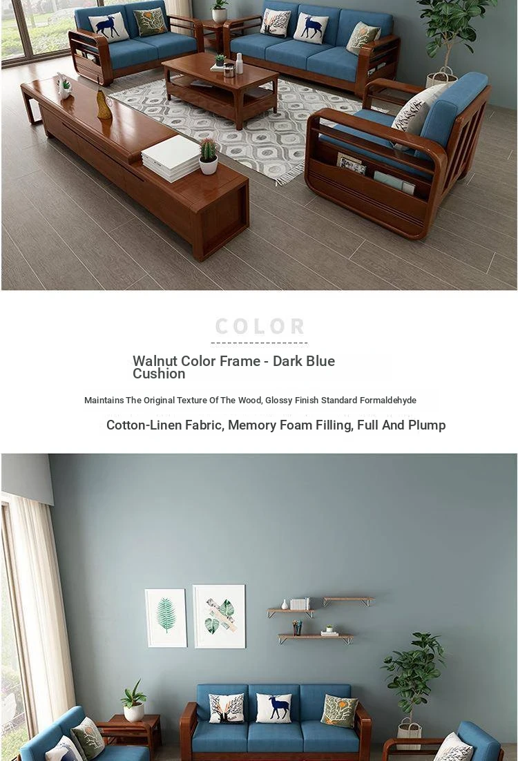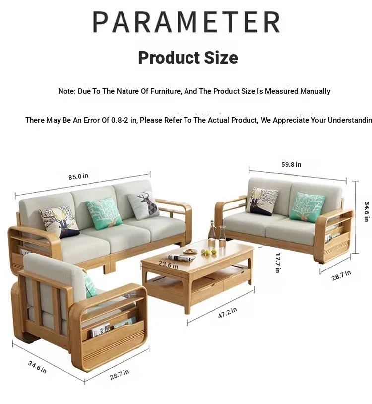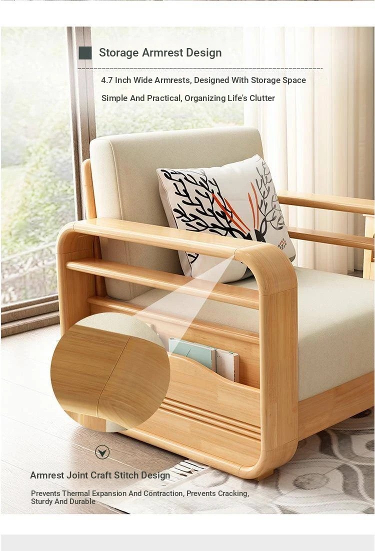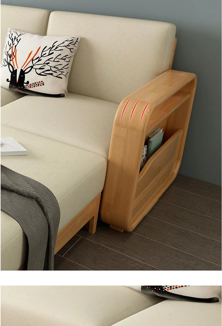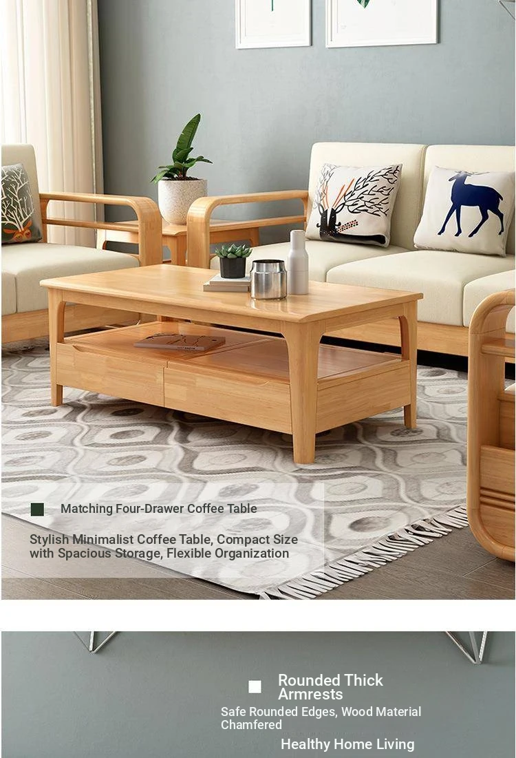Nordic Solid Wood Sofa Set with Chaise Lounge – Modern Minimalist Design for Small Living Rooms, Perfect for Home Use, Made of Durable Rubber Wood.