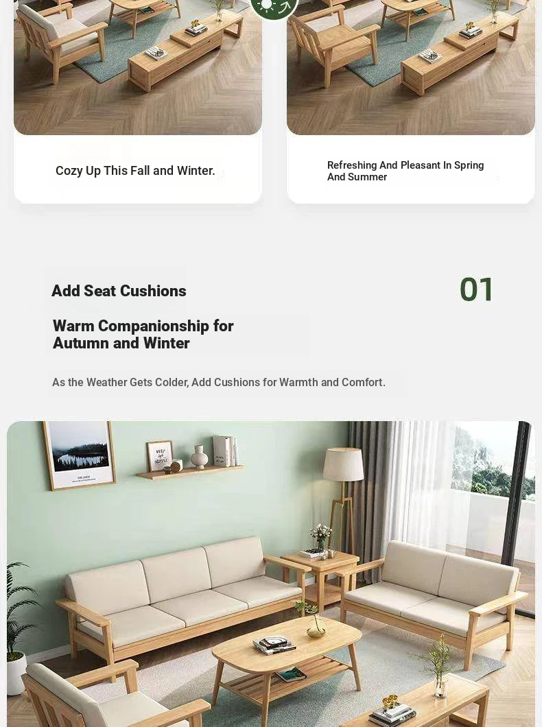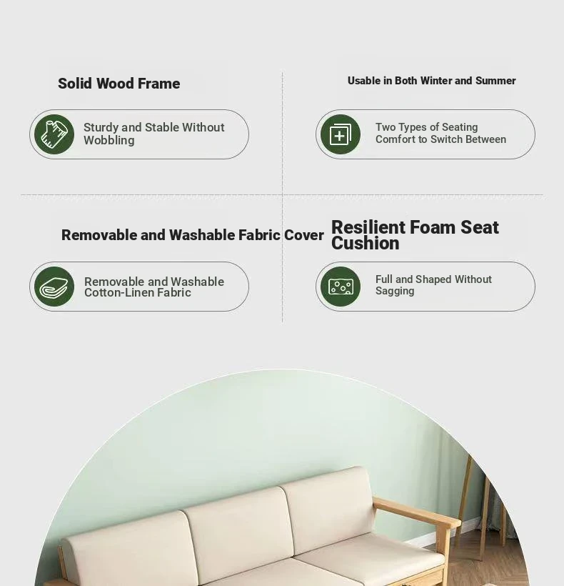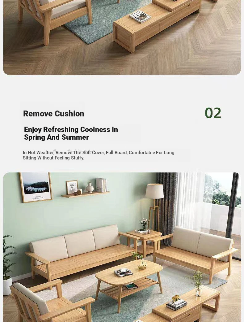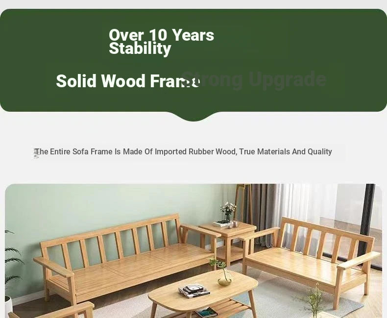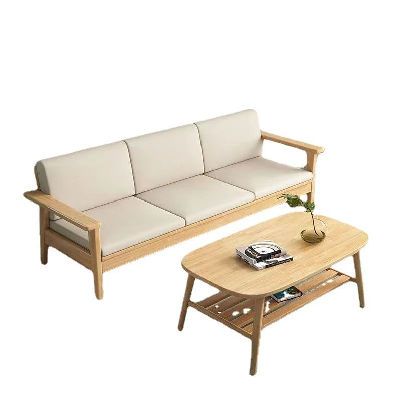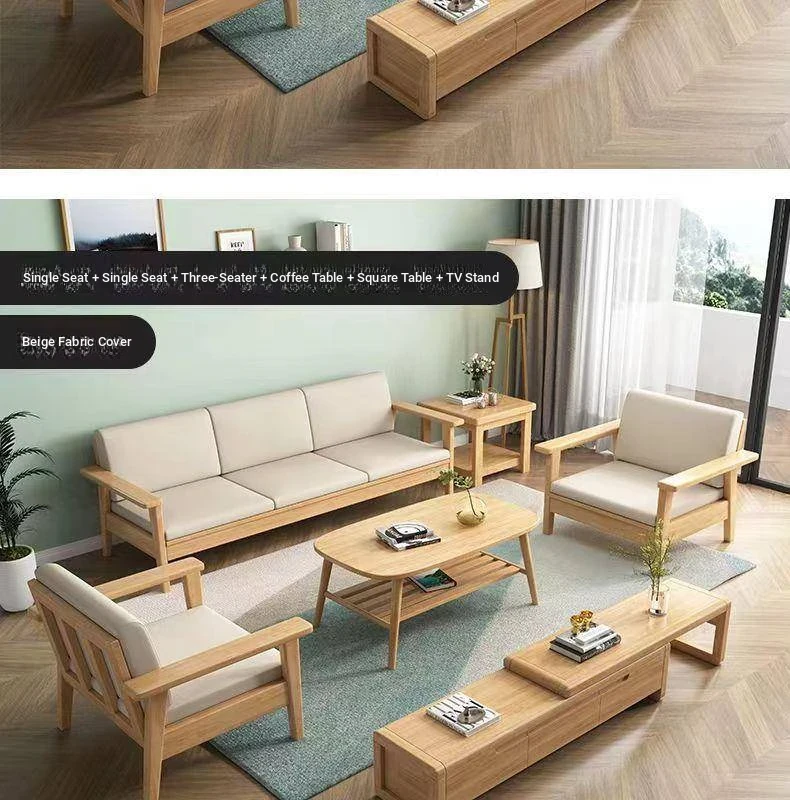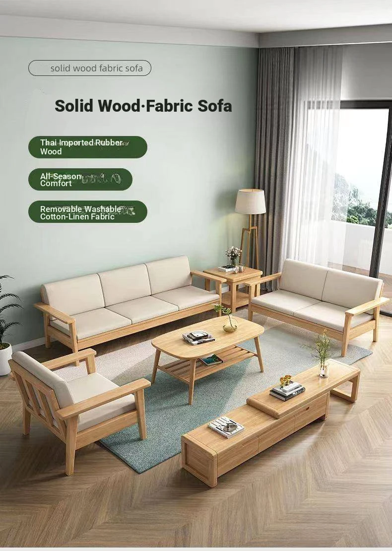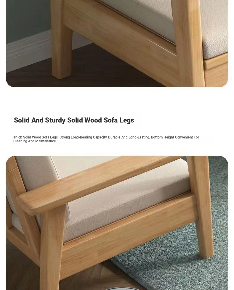 Nordic Style Solid Wood Sofa Set – Versatile Winter & Summer Use for Small Living Rooms – Affordable Rustic Design for Compact Spaces