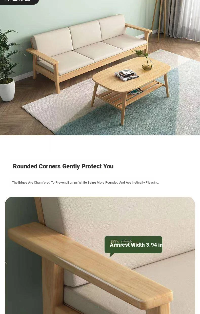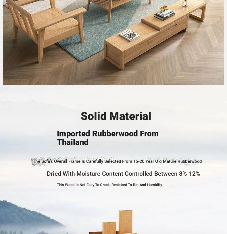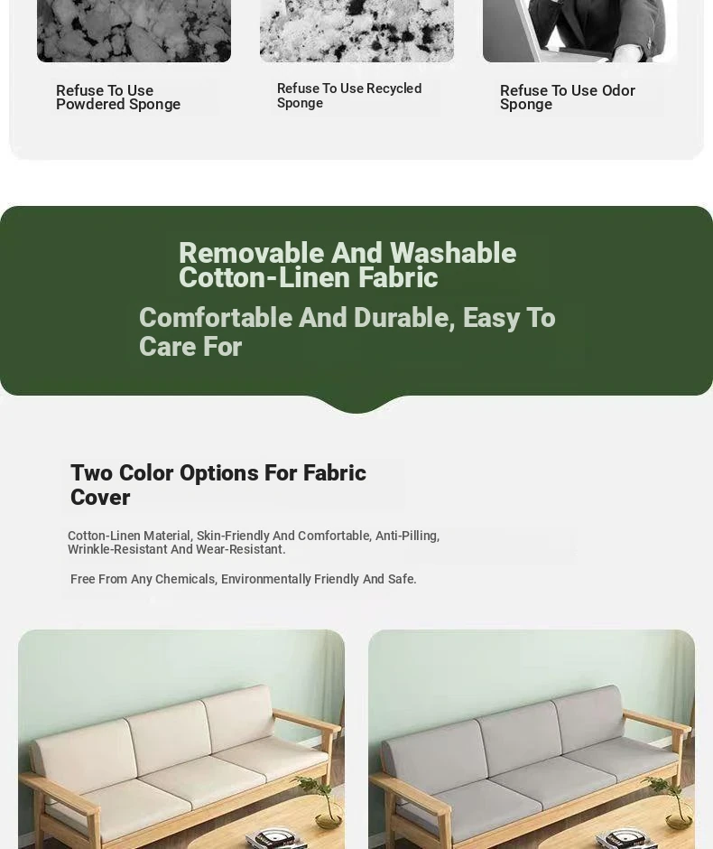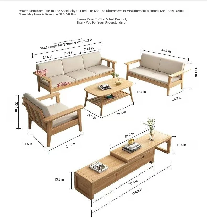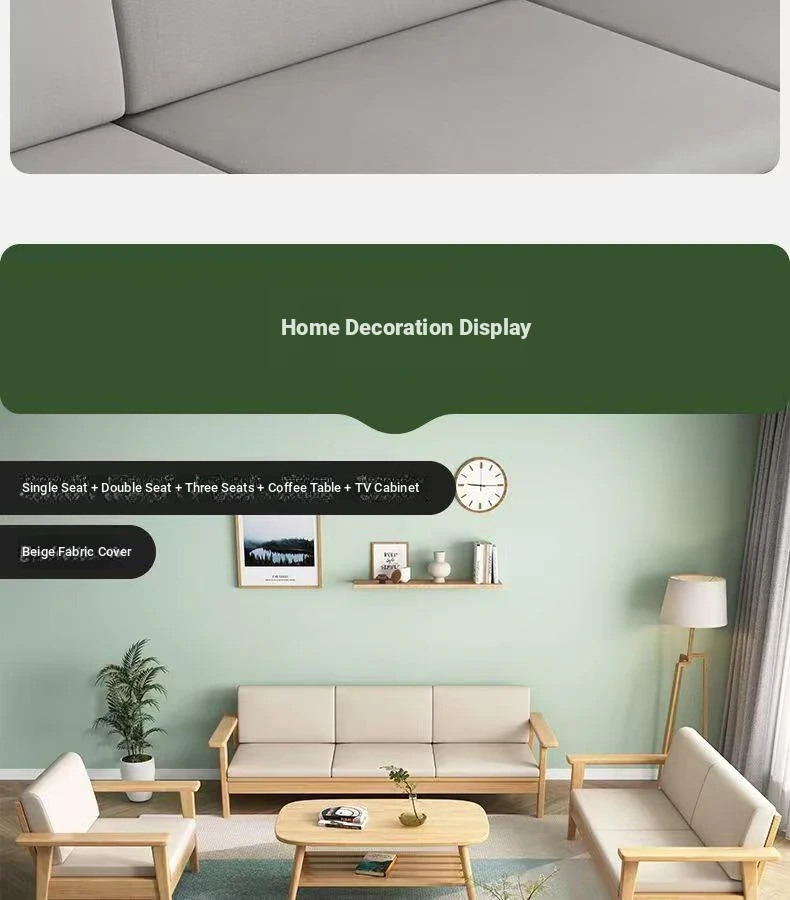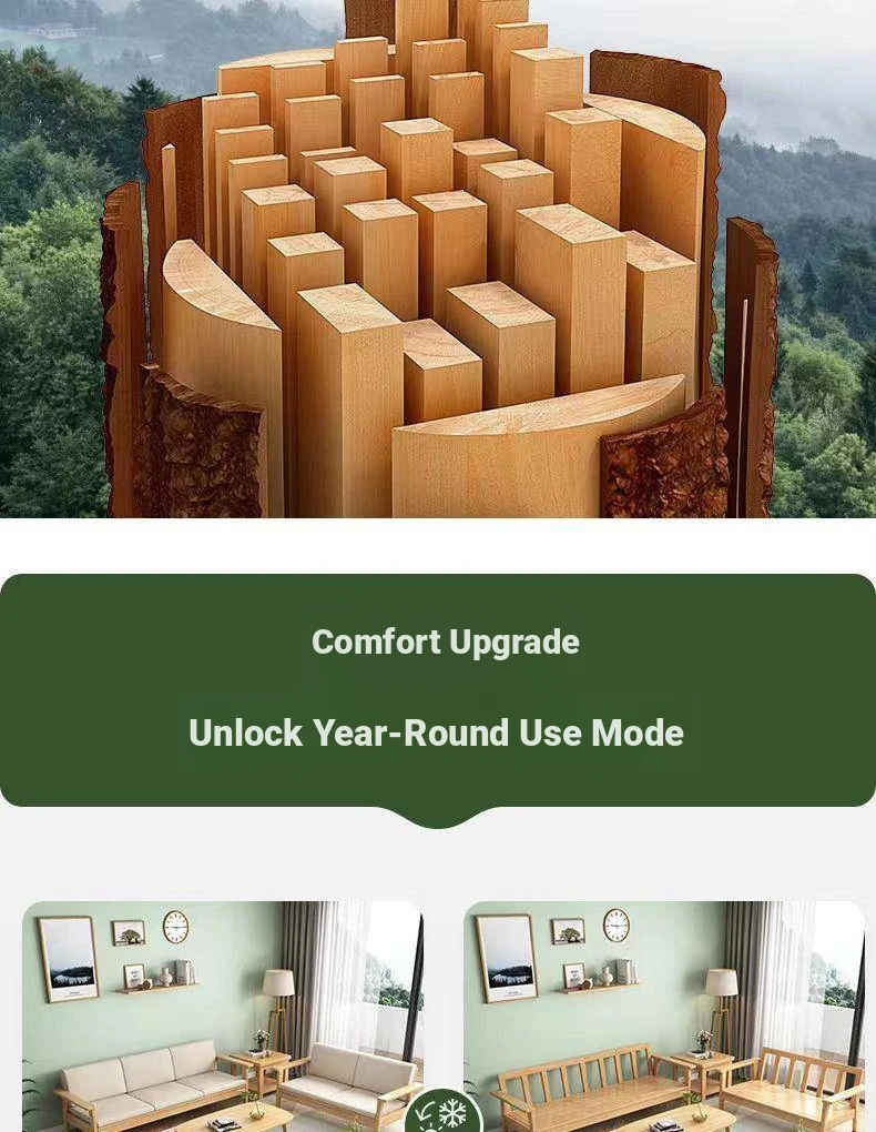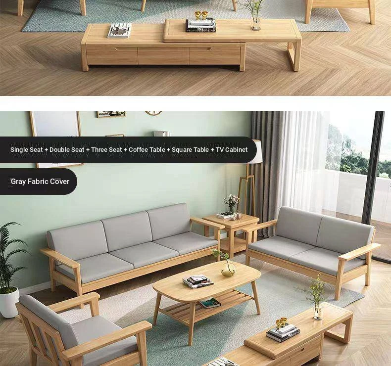 Nordic Style Solid Wood Sofa Set – Versatile Winter & Summer Use for Small Living Rooms – Affordable Rustic Design for Compact Spaces