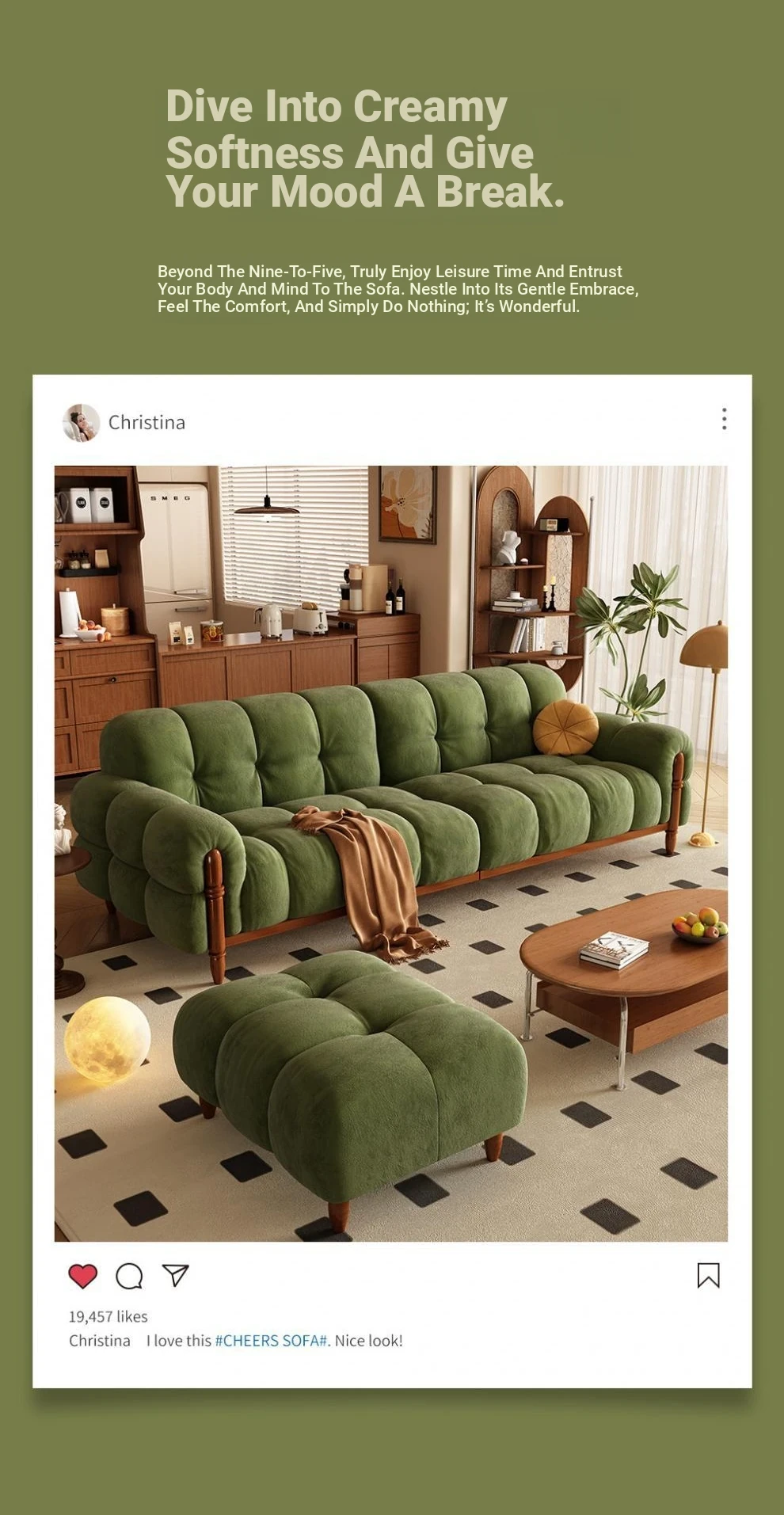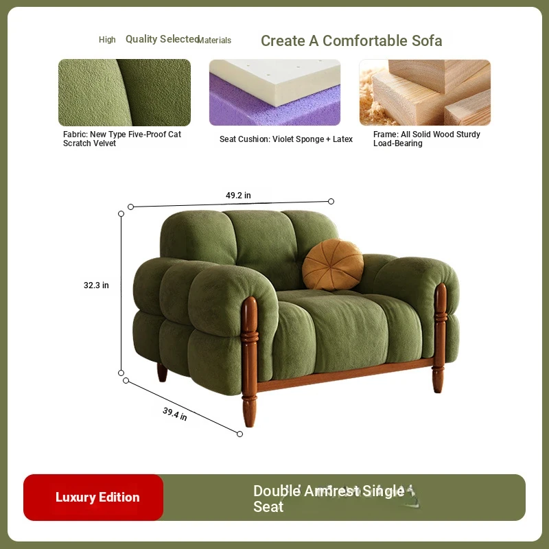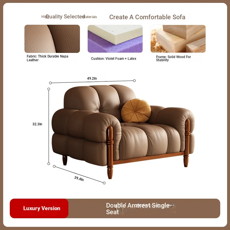 Retro Piano Key Fabric Sofa - New Cream Style for Small Living Rooms, Real Leather Combination with Natural Wood Accents. Perfect for Modern Spaces!