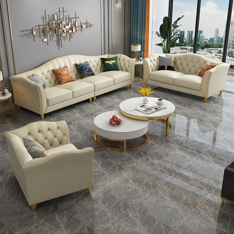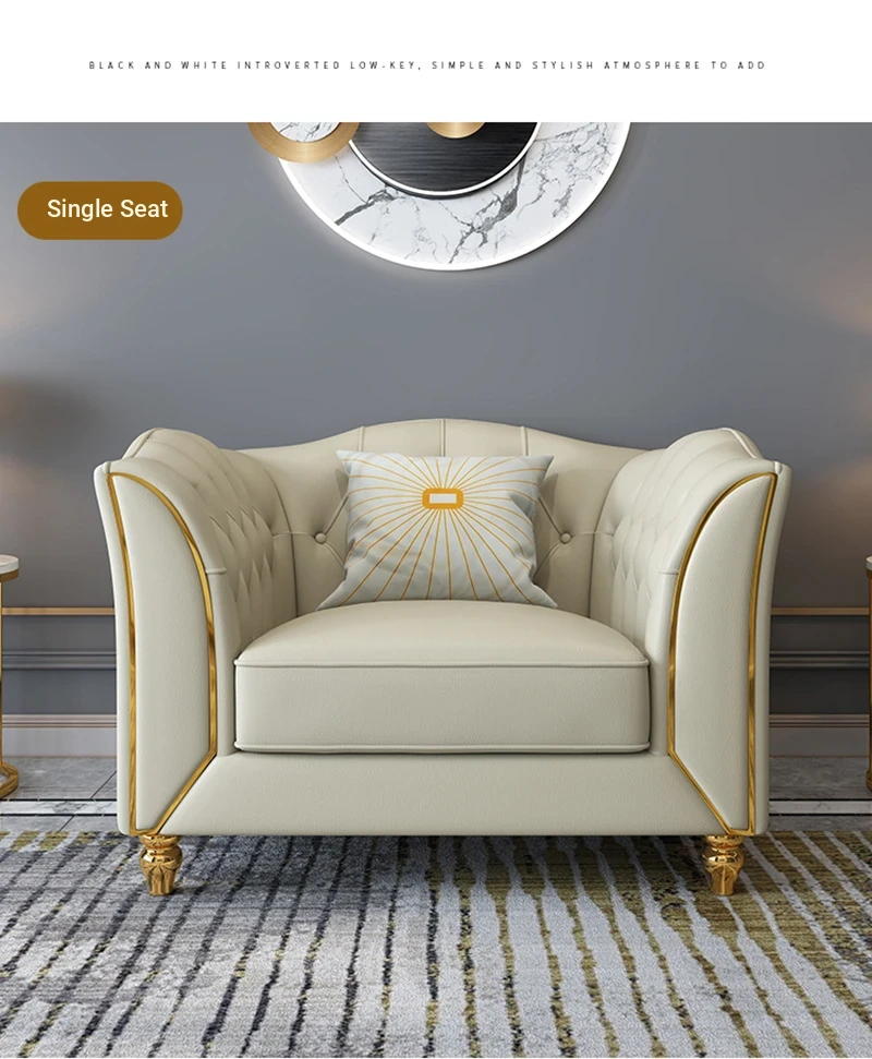 RUSEN Modern Chic Leather Sofa for Living Room - 3-Seater Italian Style Compact Design for Small Spaces - Sleek and Stylish 123 Combo