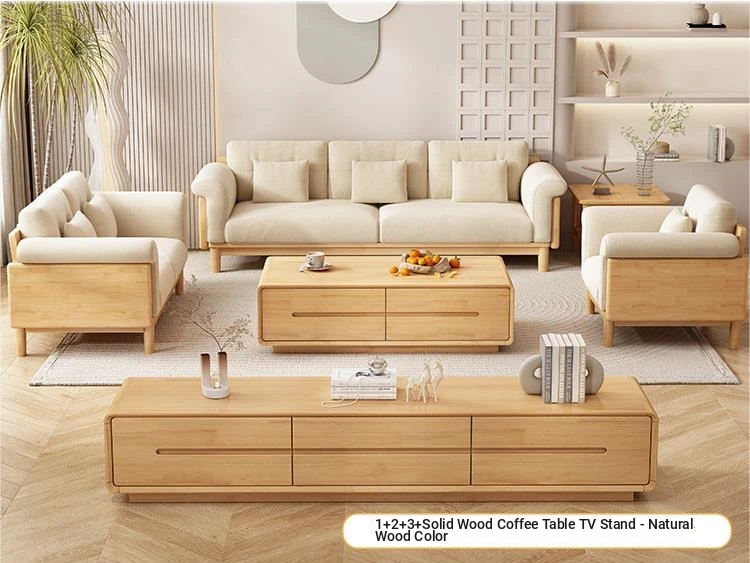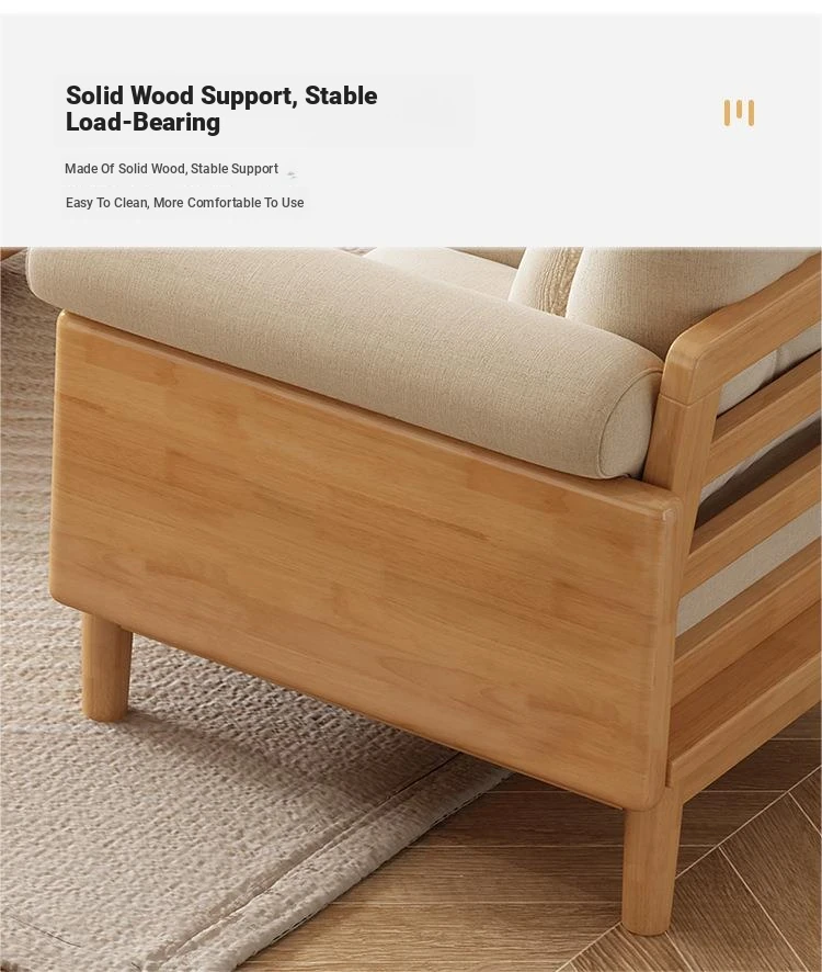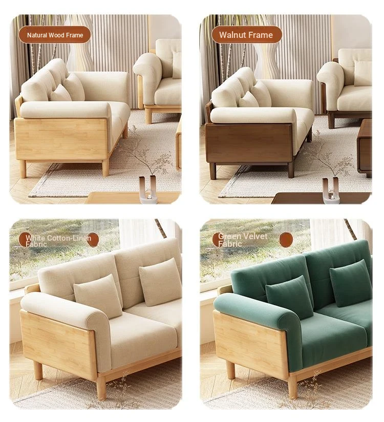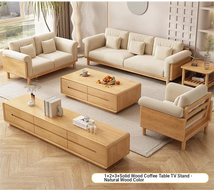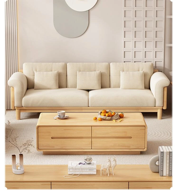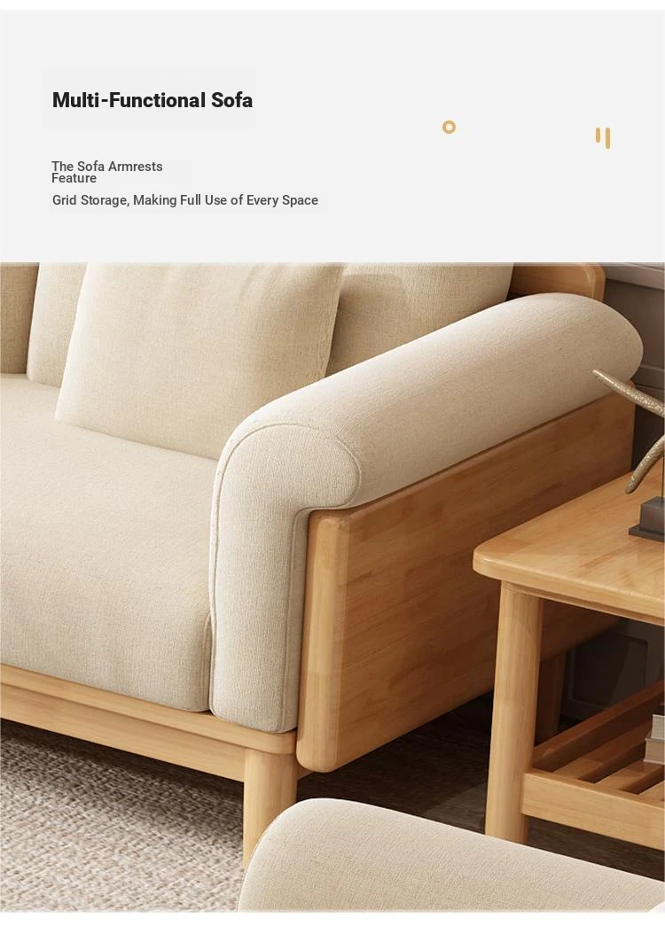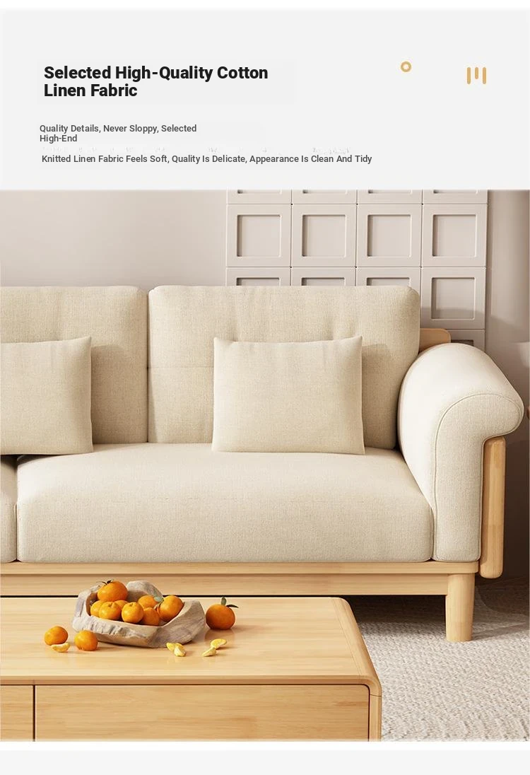 Scandinavian Solid Wood Sofa - Modern Minimalist Cream Style Fabric Sofa Set for Small Living Rooms - Perfect for Cozy Homes