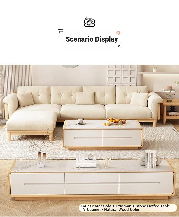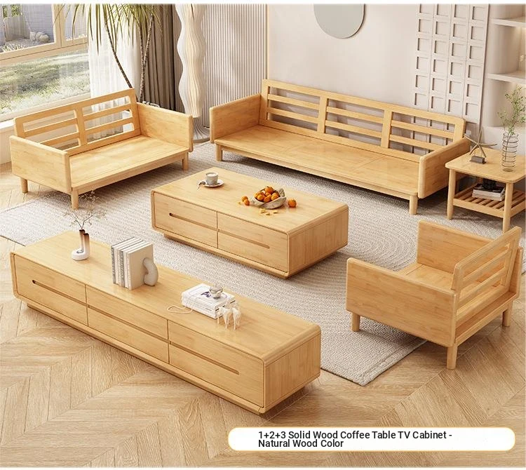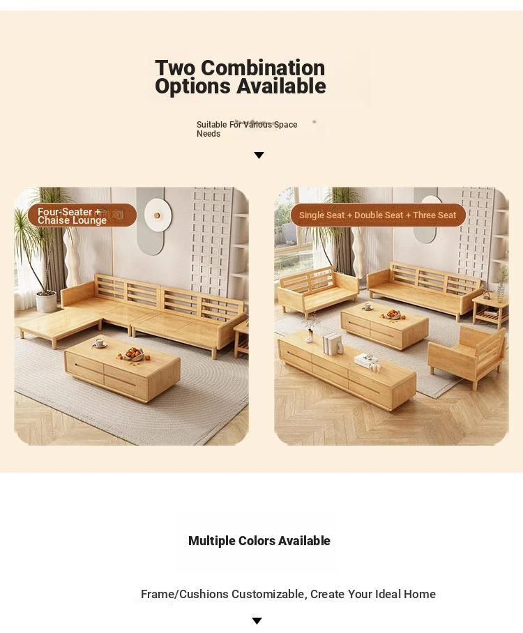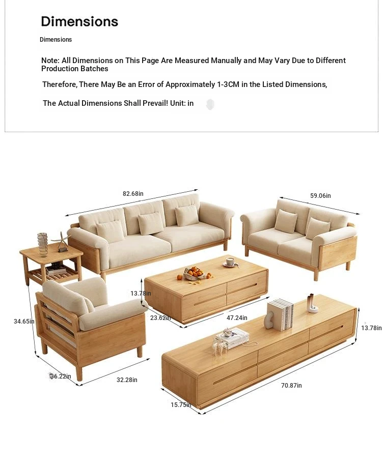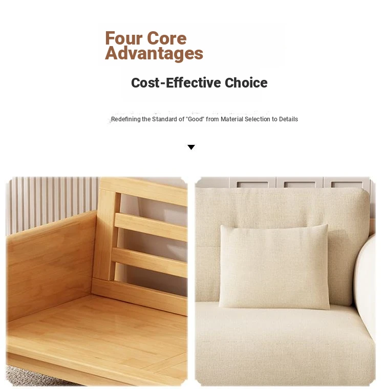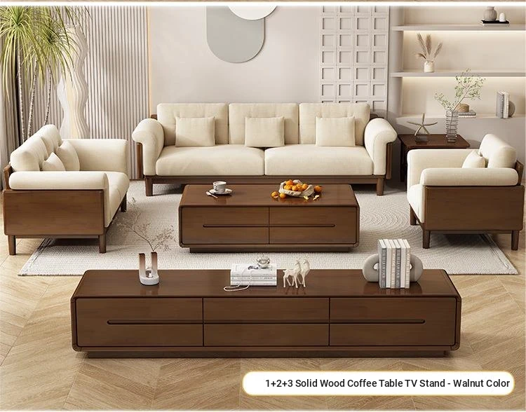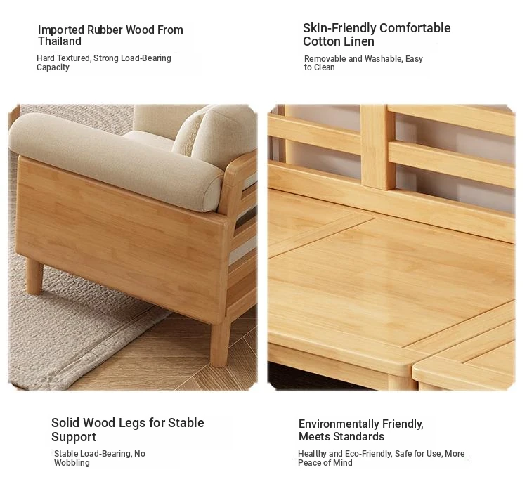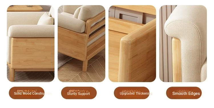 Scandinavian Solid Wood Sofa - Modern Minimalist Cream Style Fabric Sofa Set for Small Living Rooms - Perfect for Cozy Homes