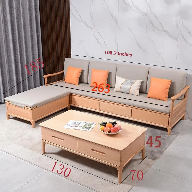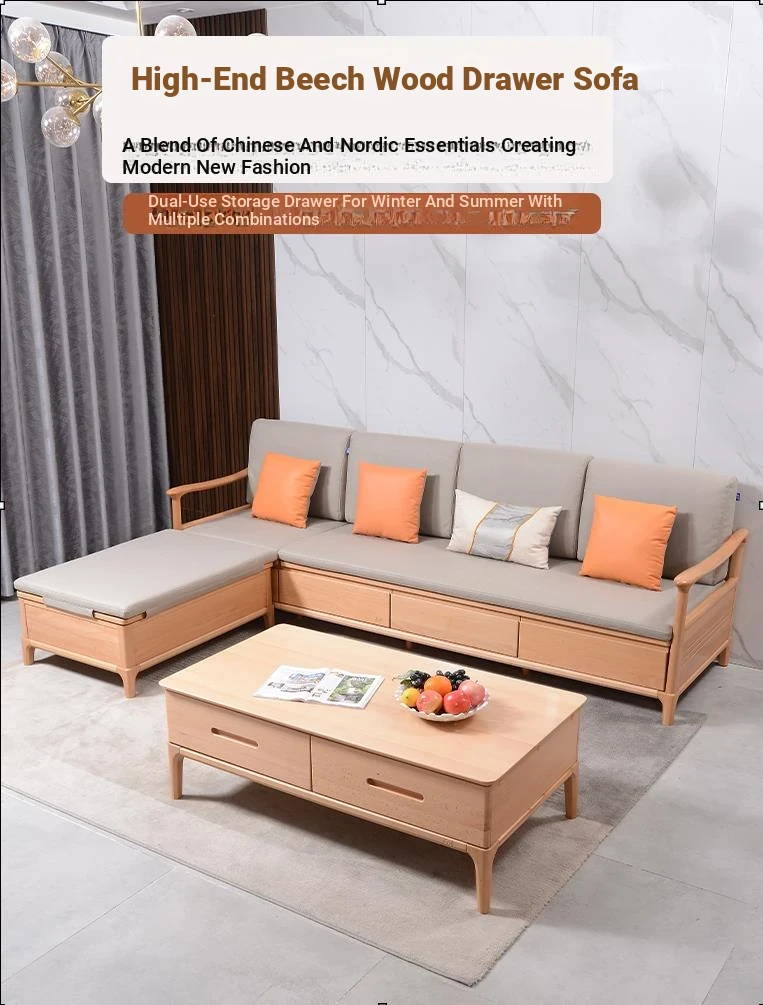 Four-person Imperial Concubine + long tea table (log color) full paint moisture-proof storage style
