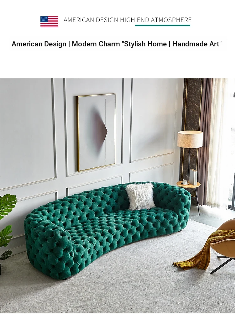 Stylish American Light Luxury Corner Sofa - Designer Curved Sectional with Detachable Features for Spacious Villas and Trendy Living Rooms