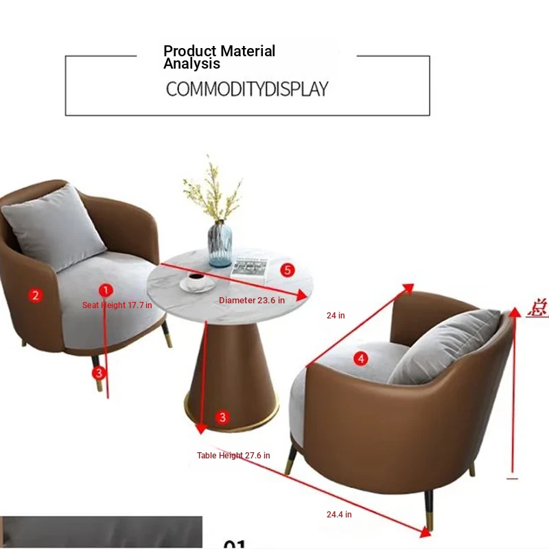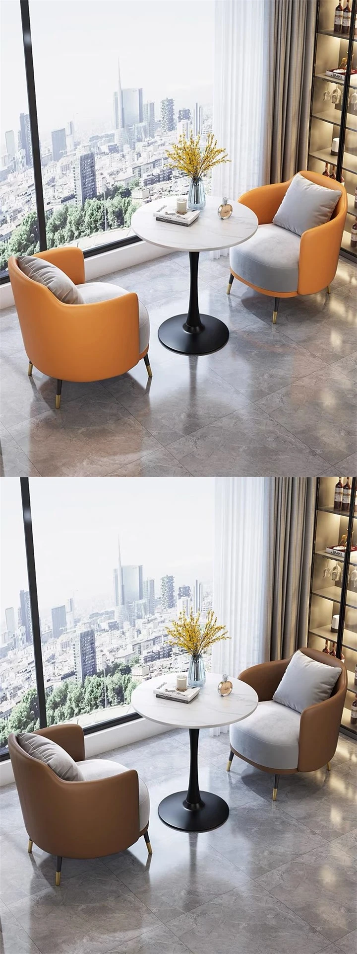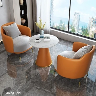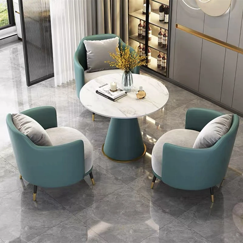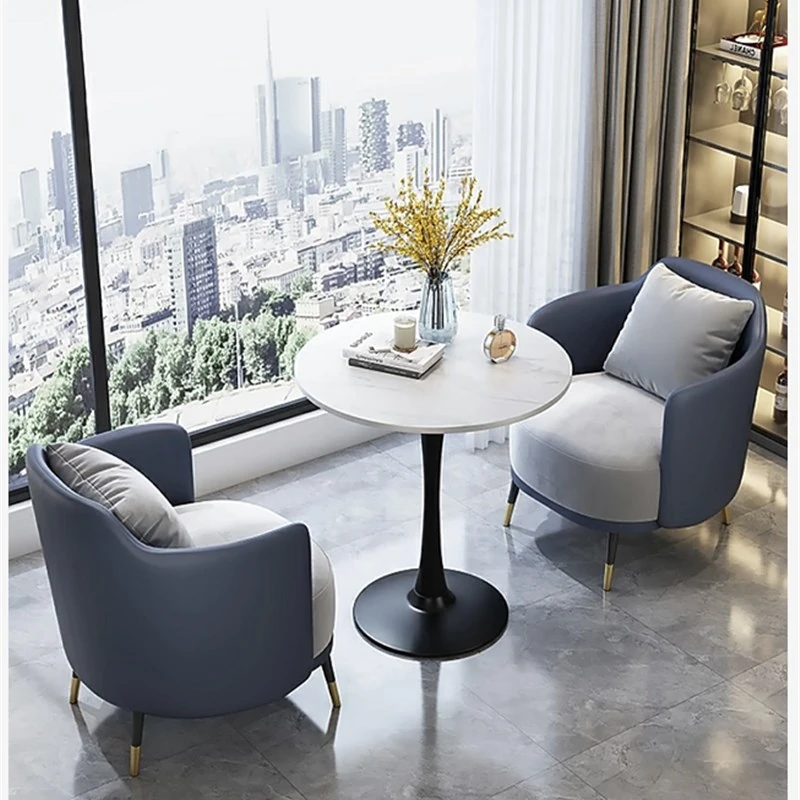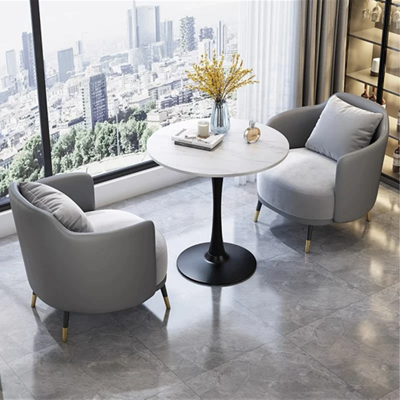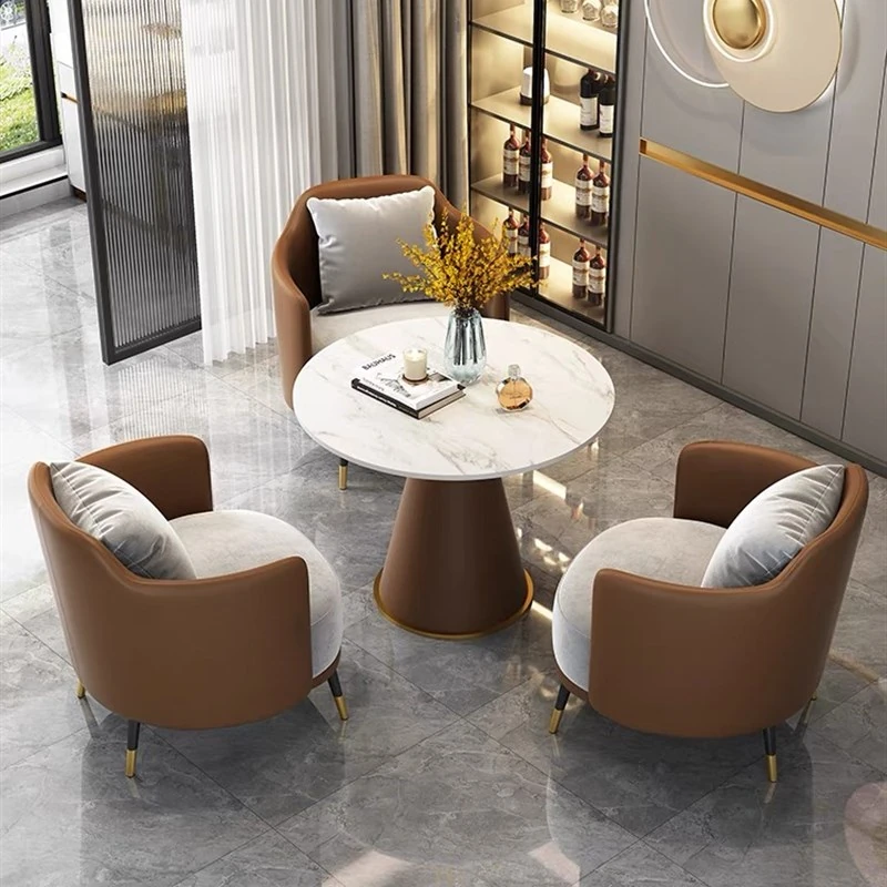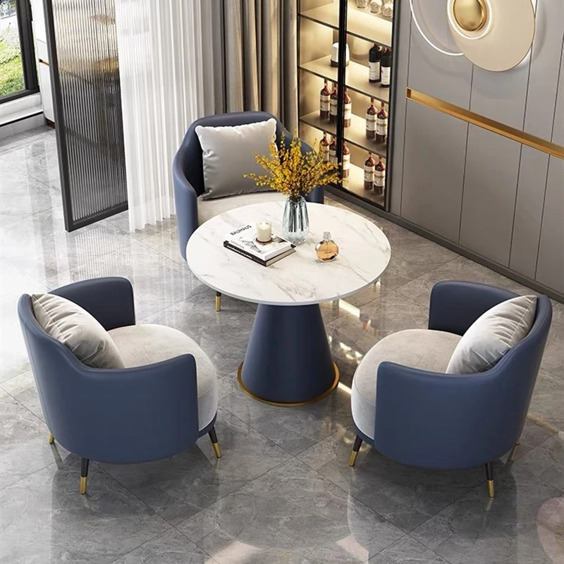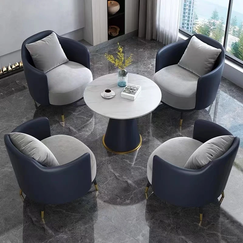 Stylish Reception Desk and Chair Set for Real Estate Sales Office – Trendy Lounge Sofa and Coffee Table Combo with Small Round Table and Two Chairs for Conversations and Negotiations. Perfect for Creating an Inviting Atmosphere!