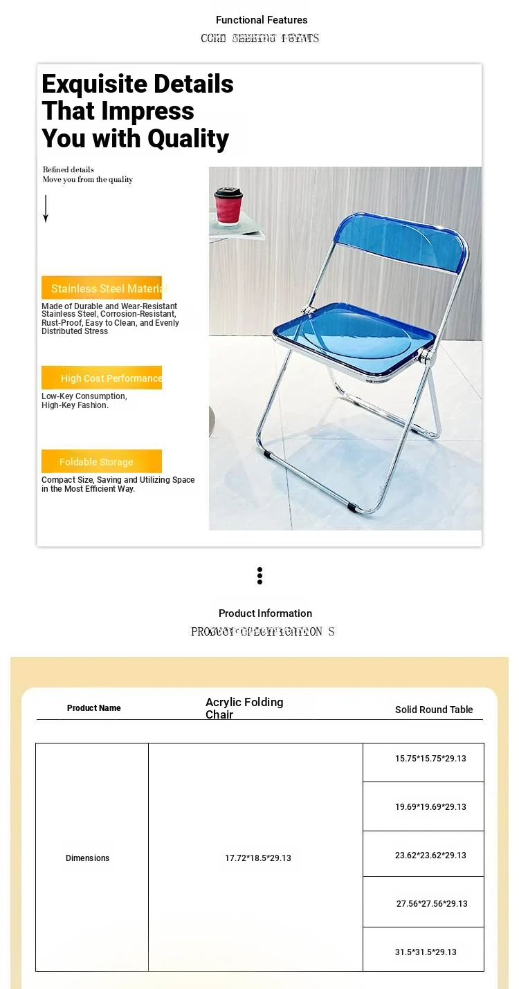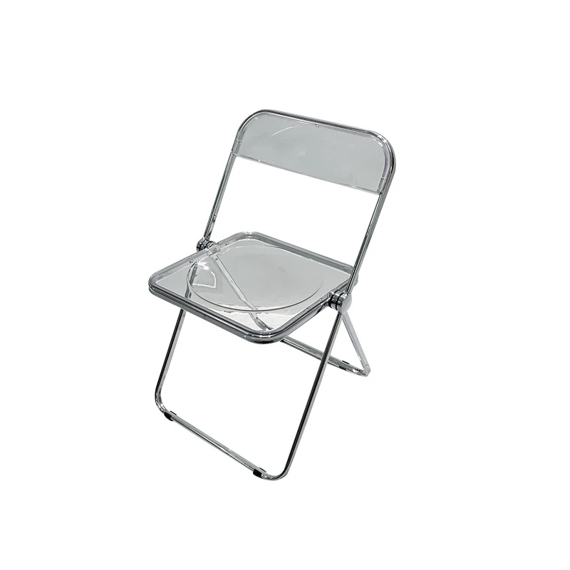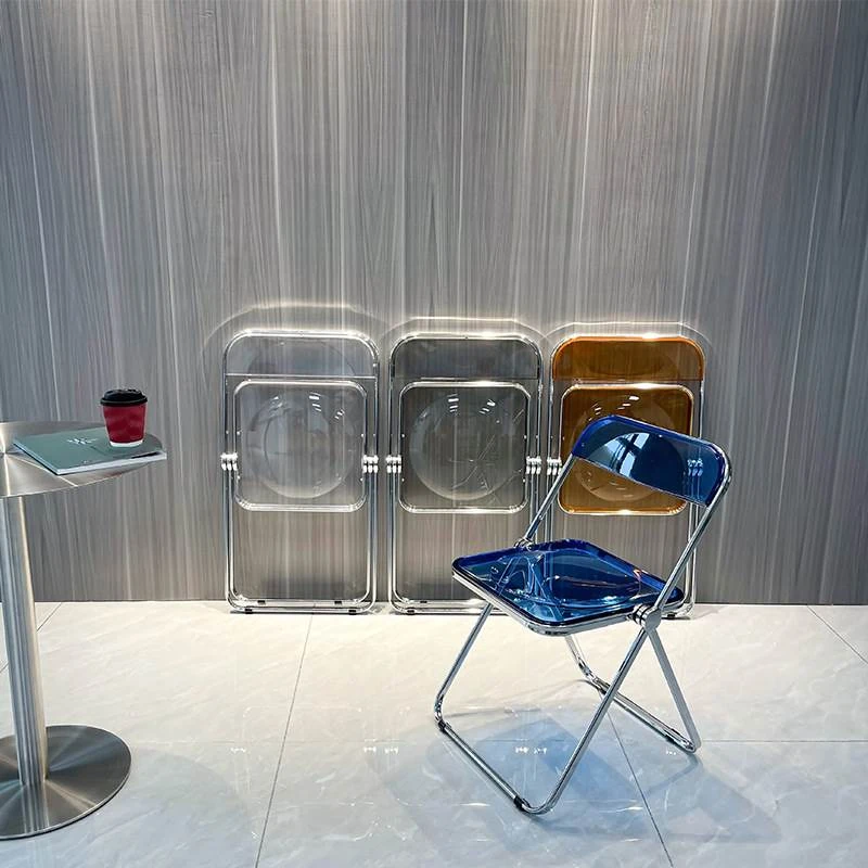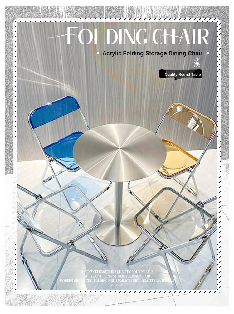 Trendy Milk Tea Shop Acrylic Dining Chair with Transparent Folding Design and Stainless Steel Round Table - Industrial Style Solid Table for a Chic Cafe Experience