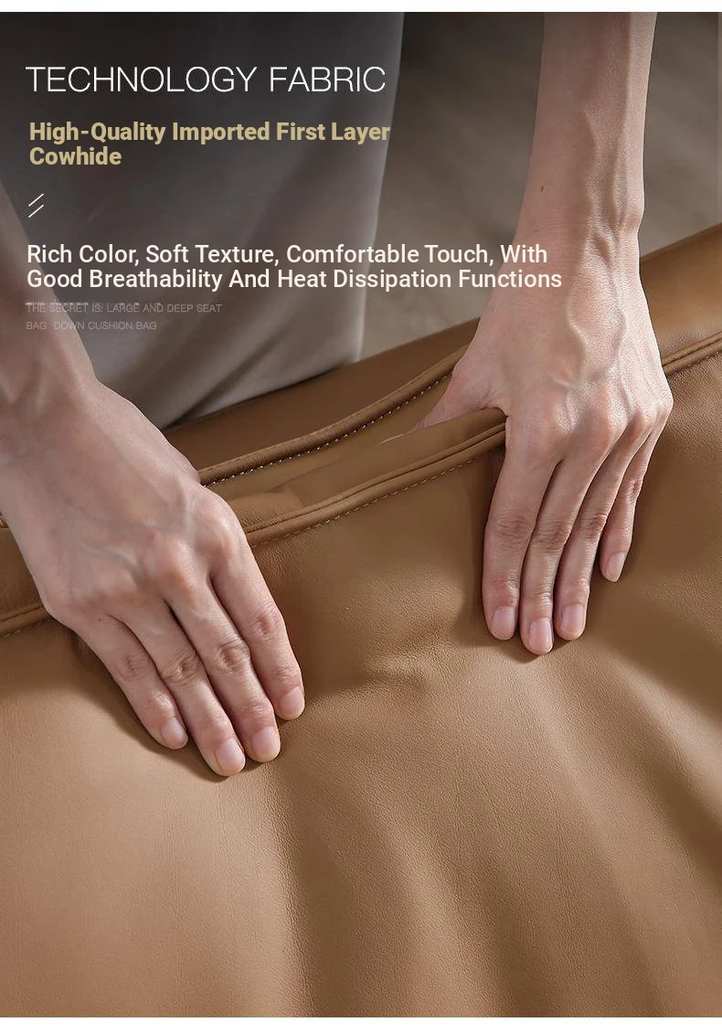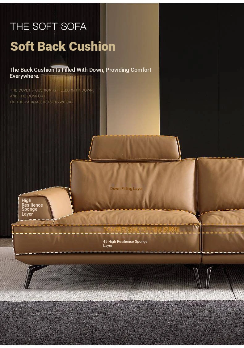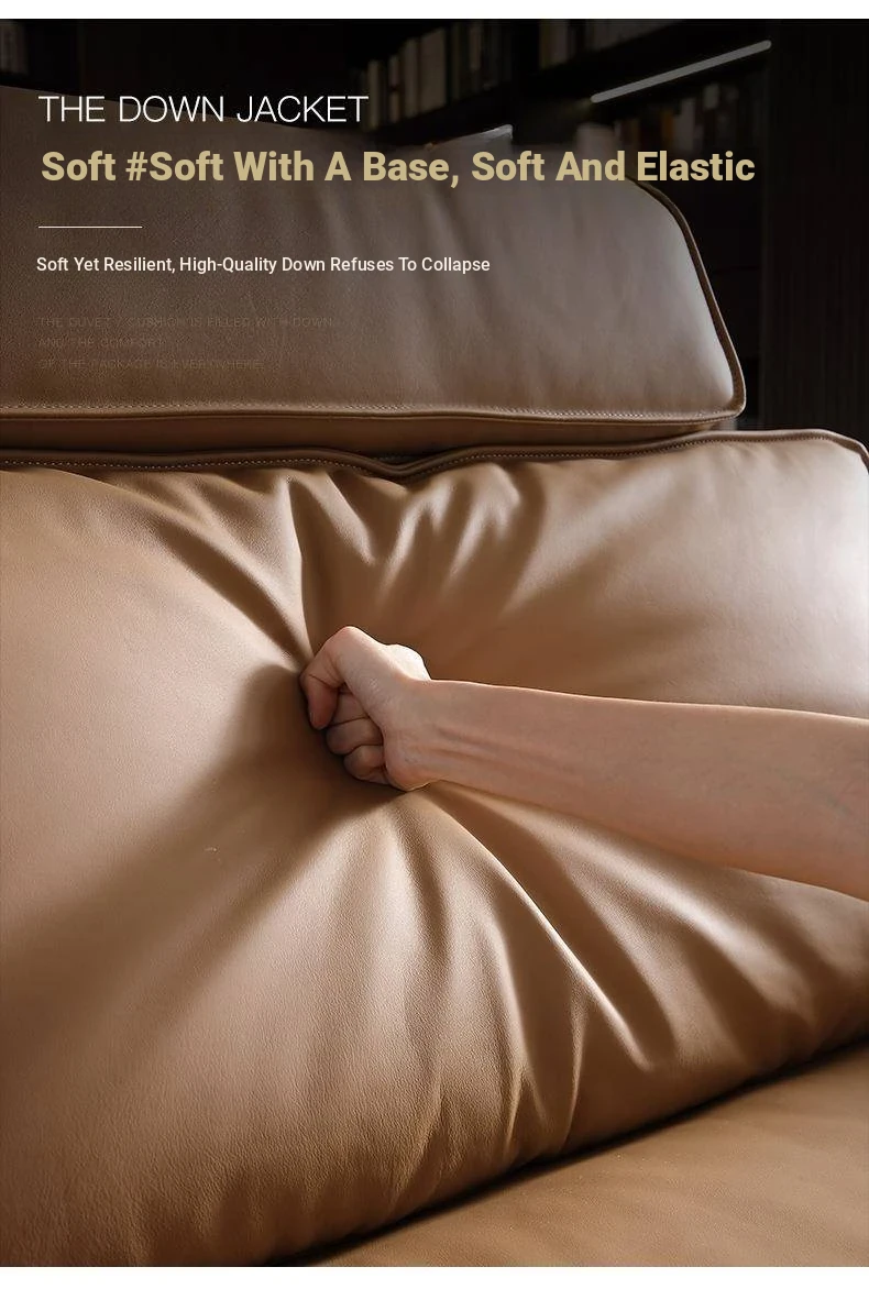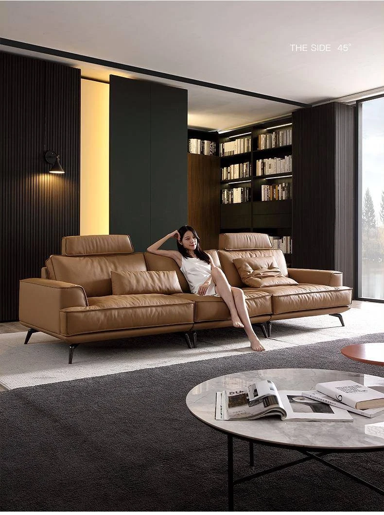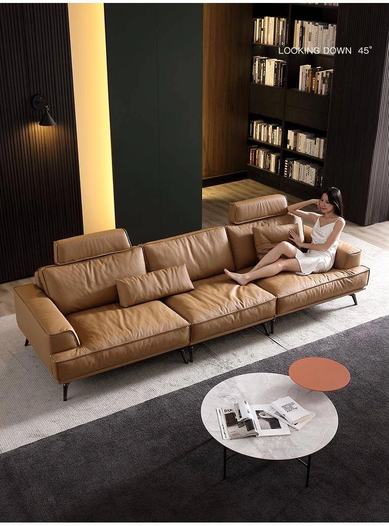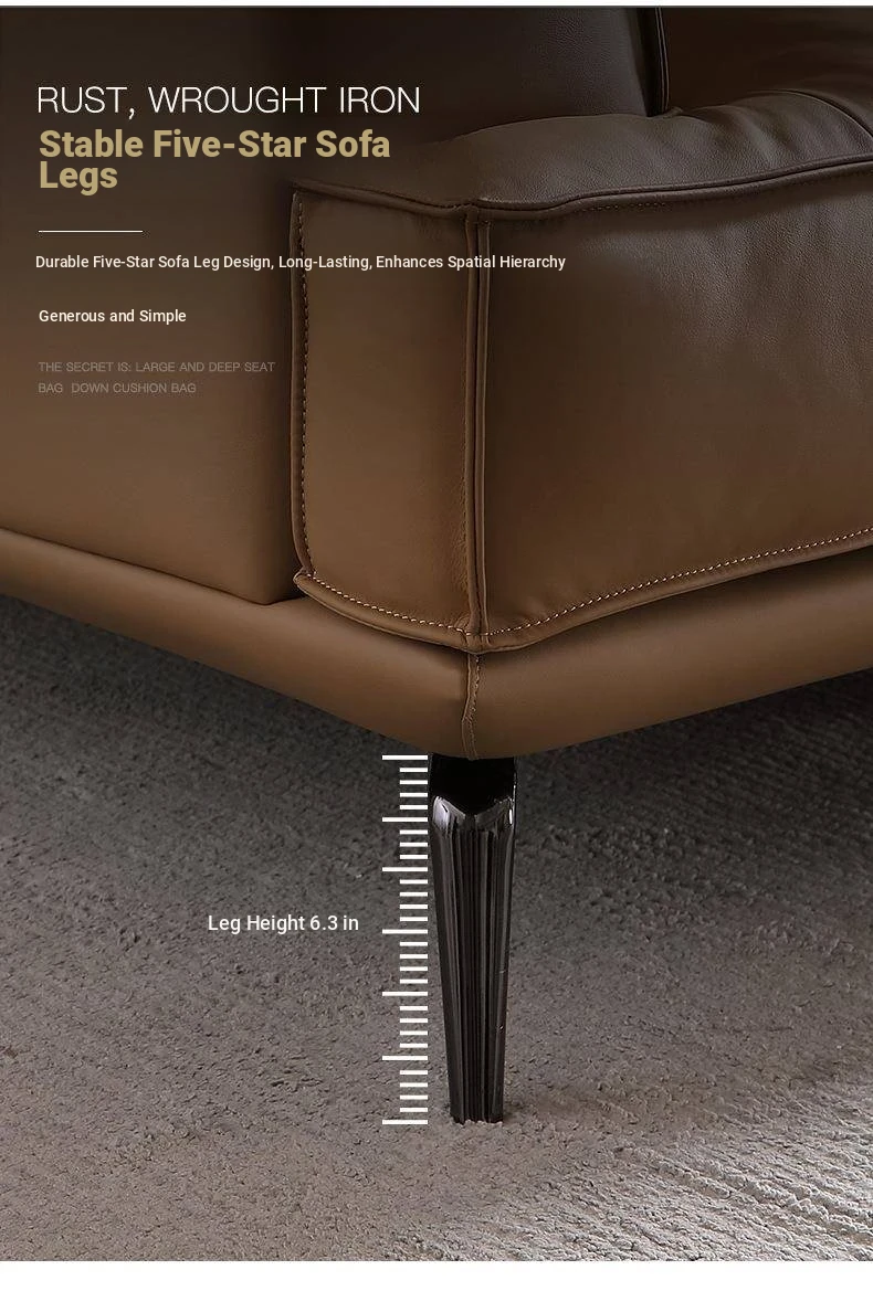 "Wabi-Sabi Style Genuine Leather Sofa - Modern Minimalist Design for Small Living Rooms - Designer's Straight Sofa Set for 3-4 People, Perfect for Trendy Spaces"